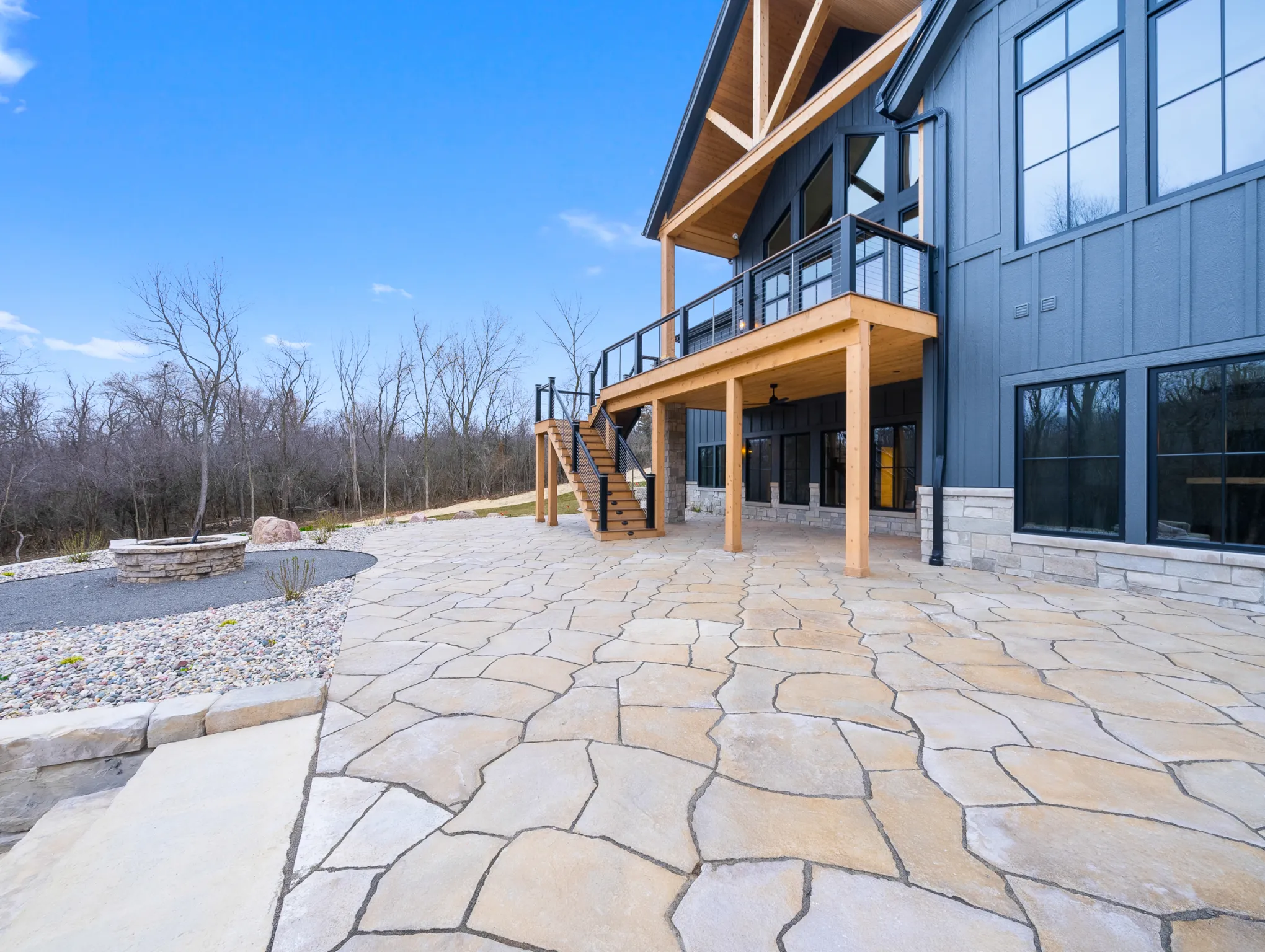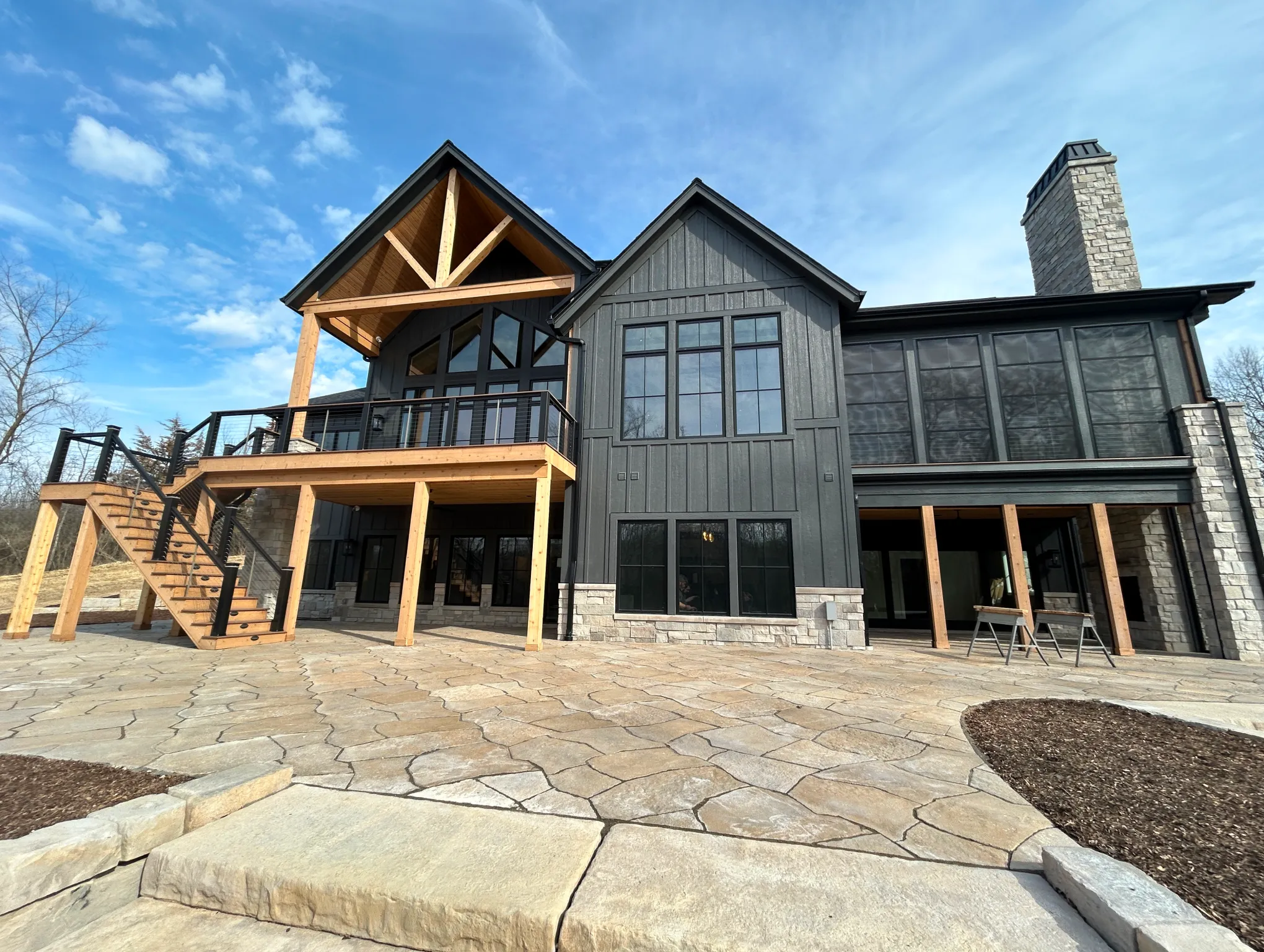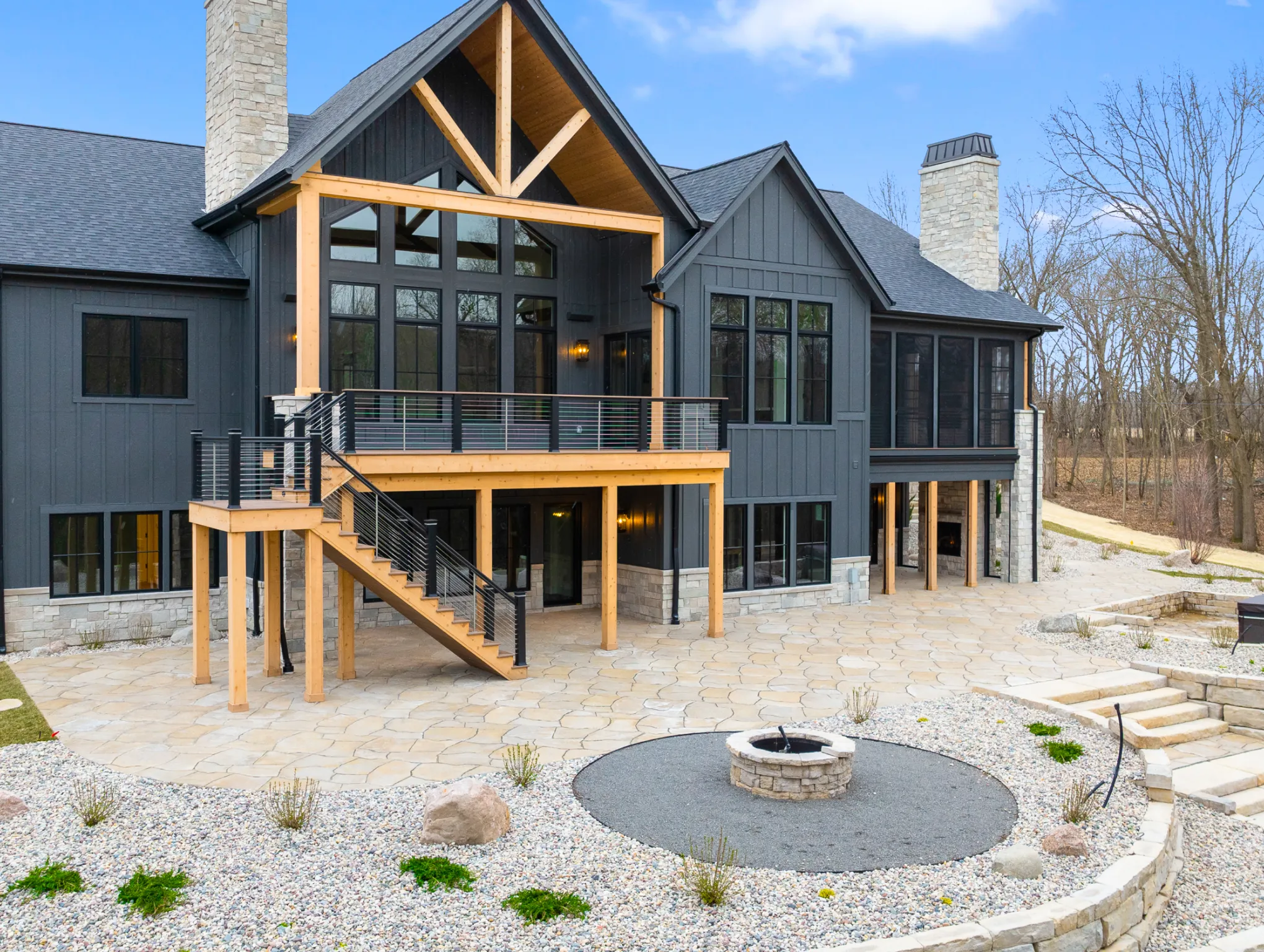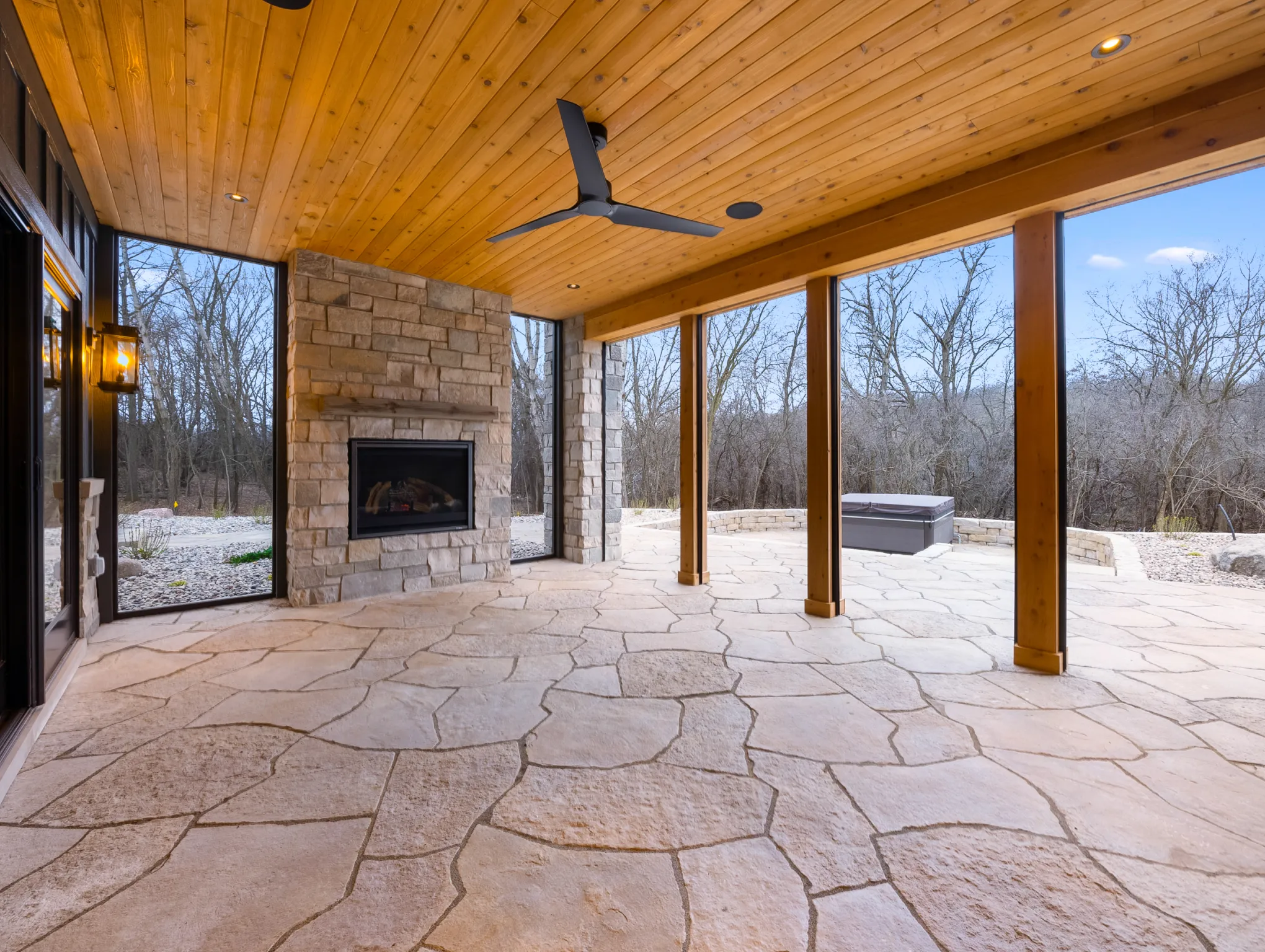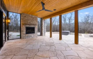 Matustik Builders constructed this stunning home in Lake Geneva, Wisconsin, with standout elements like a gourmet kitchen and an expansive family room with a beautiful stone fireplace. There's also a built in bar and a wine cellar perfect for entertaining. But we feel the highlight is the spacious patio, complete with a fireplace and fully retractable screens, ideal for enjoying delightful summer evenings.