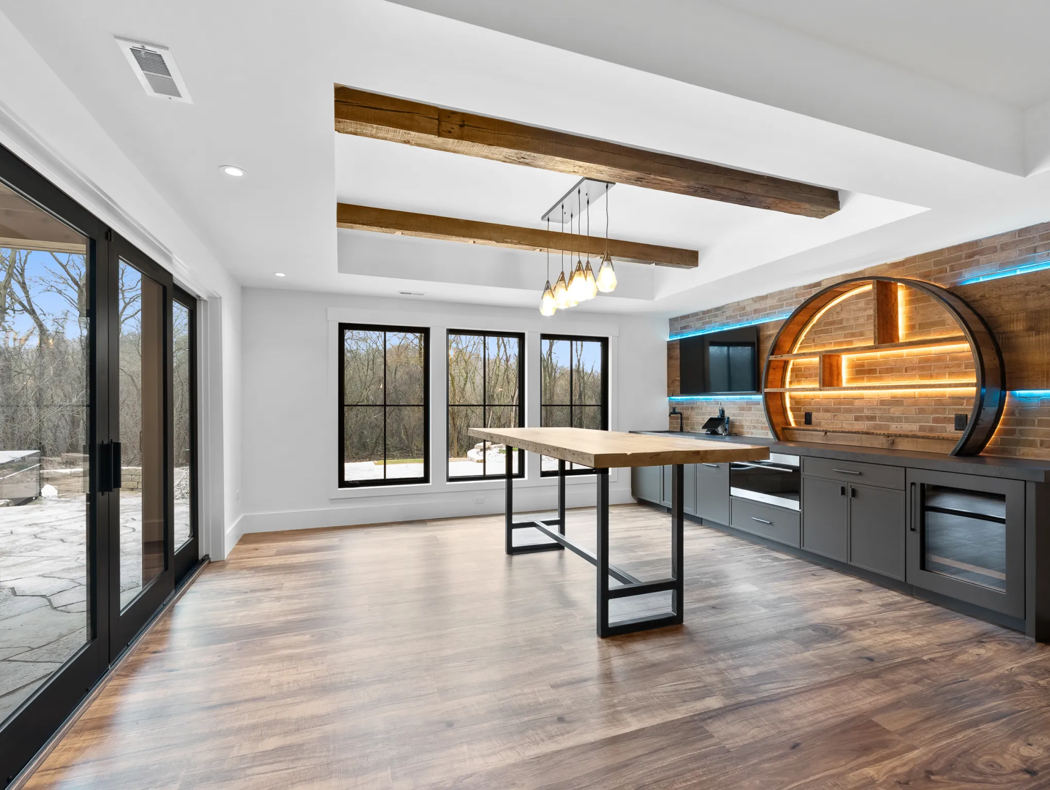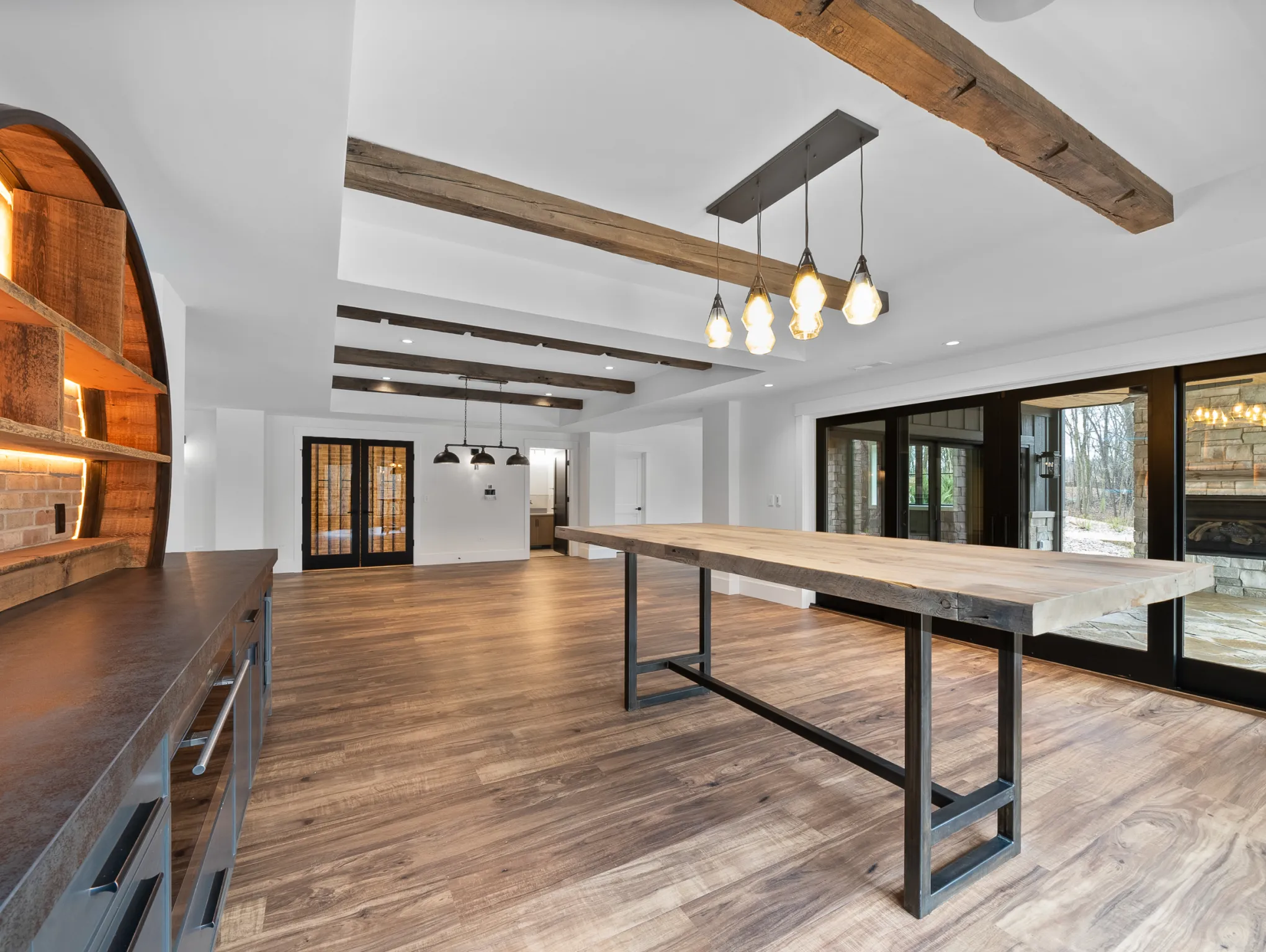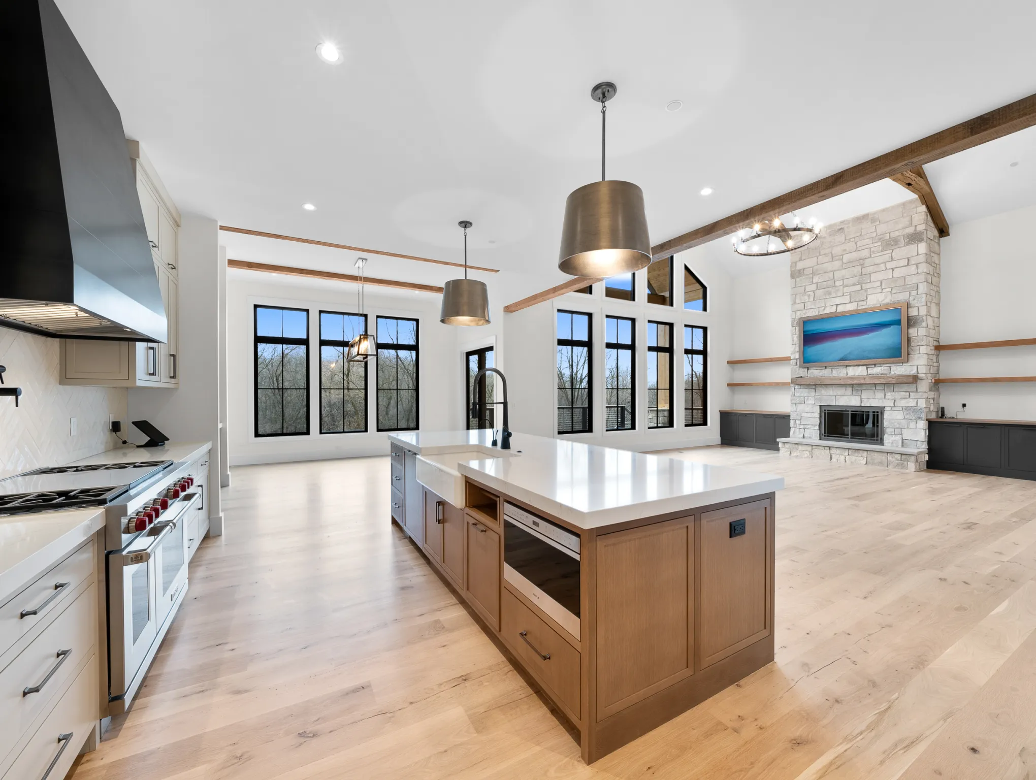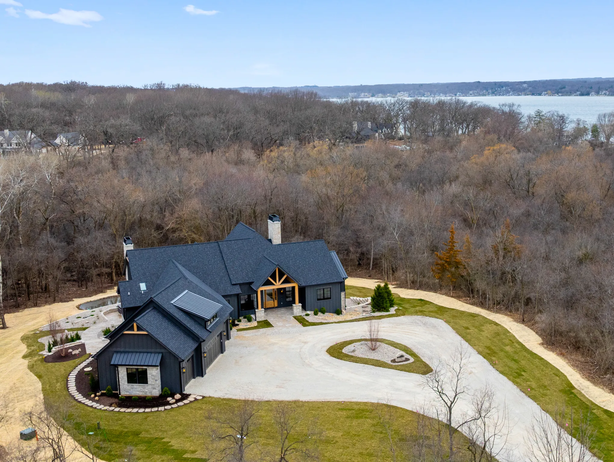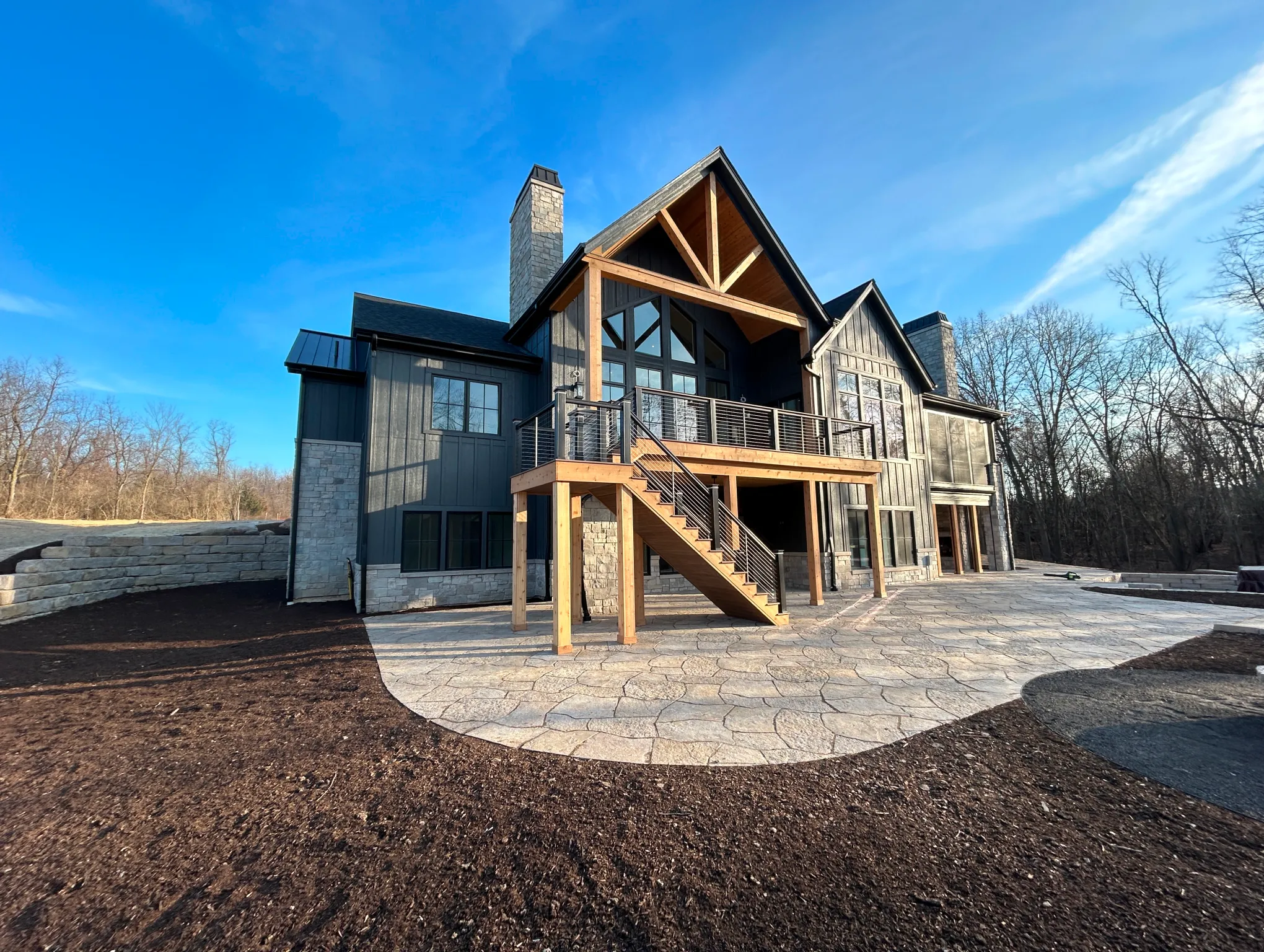 Matustik Builders constructed this stunning home in Lake Geneva, Wisconsin, with standout elements like a gourmet kitchen and an expansive family room with a beautiful stone fireplace. There's also a built in bar and a wine cellar perfect for entertaining. But we feel the highlight is the spacious patio, complete with a fireplace and fully retractable screens, ideal for enjoying delightful summer evenings.