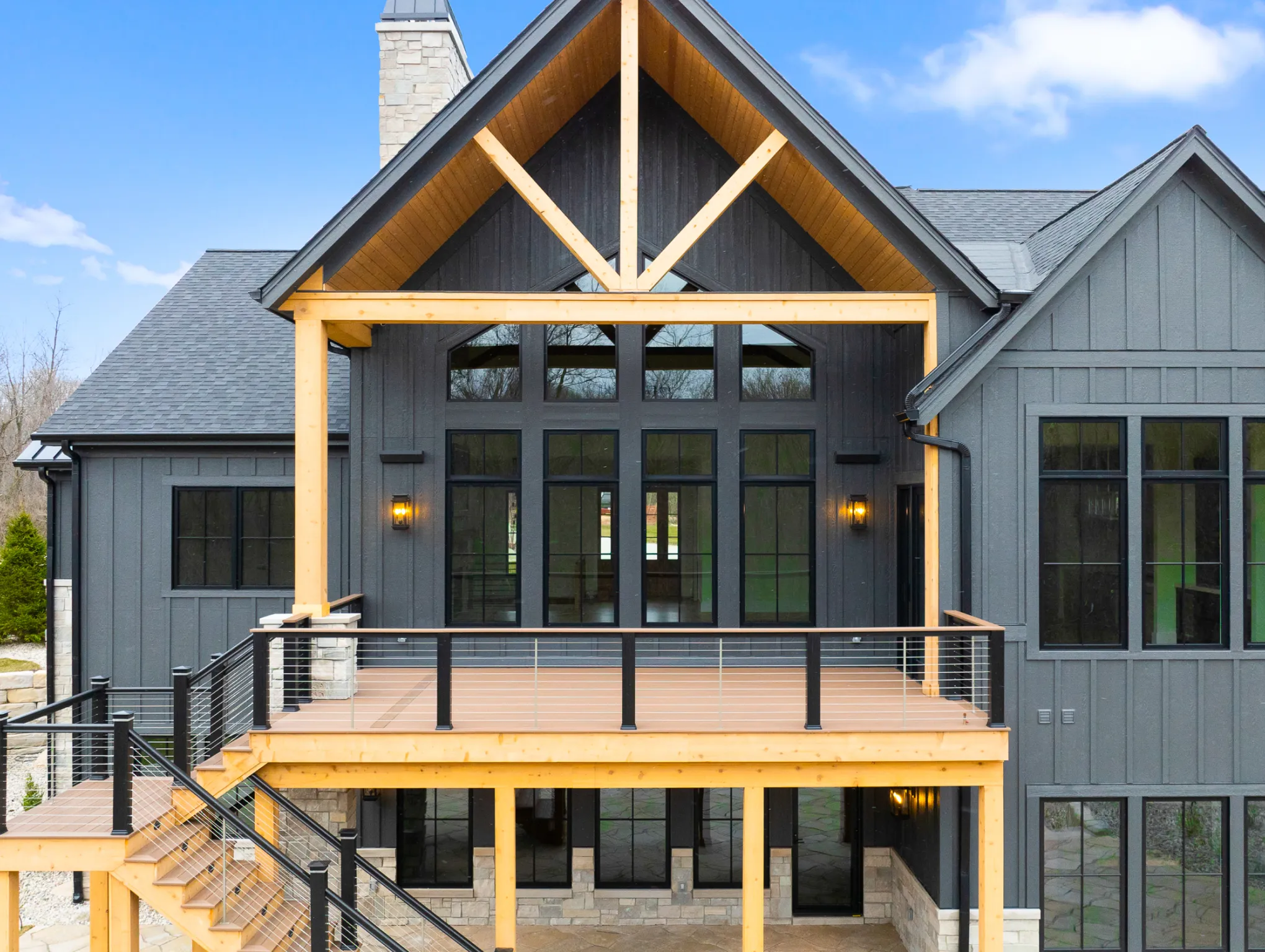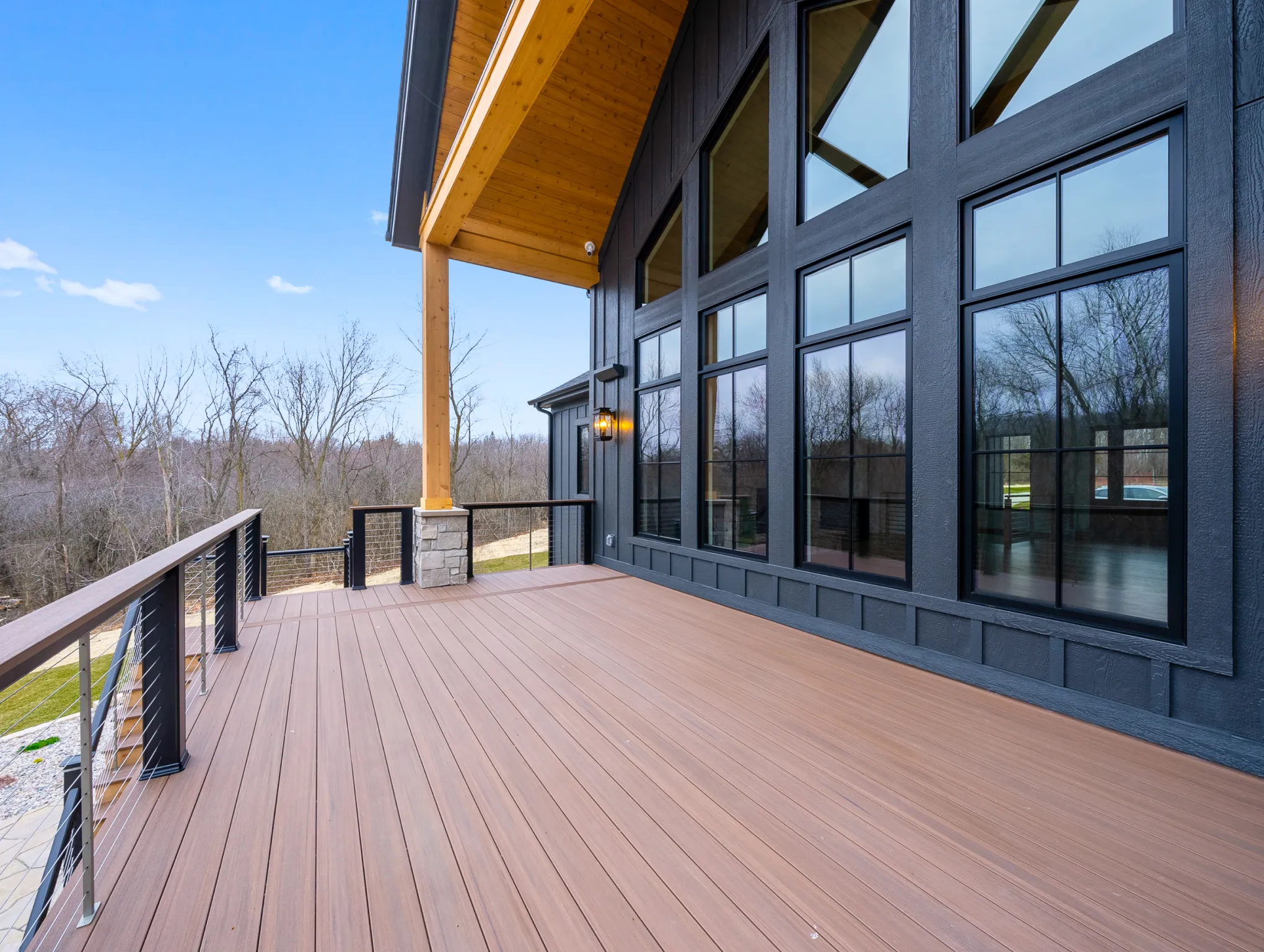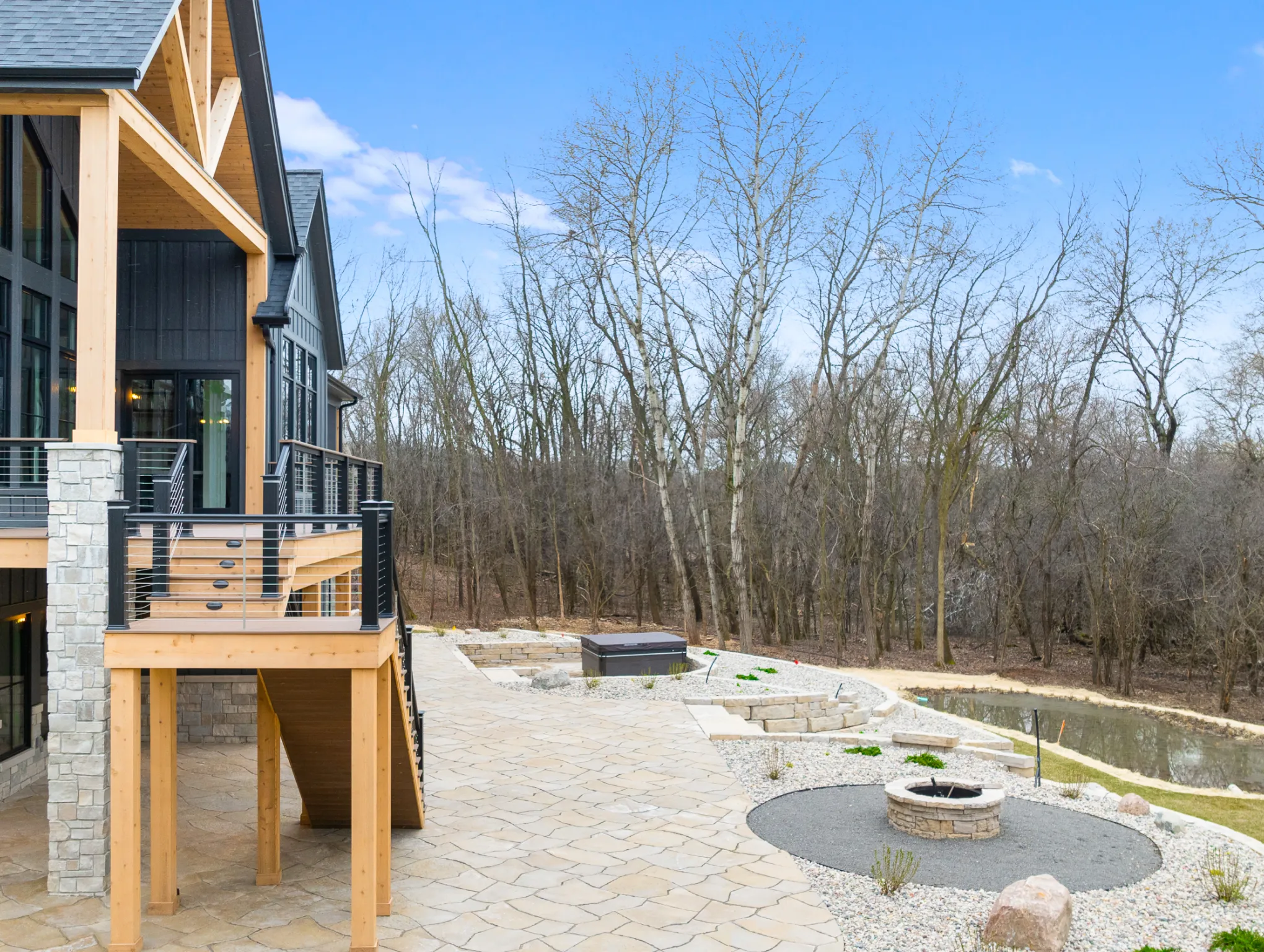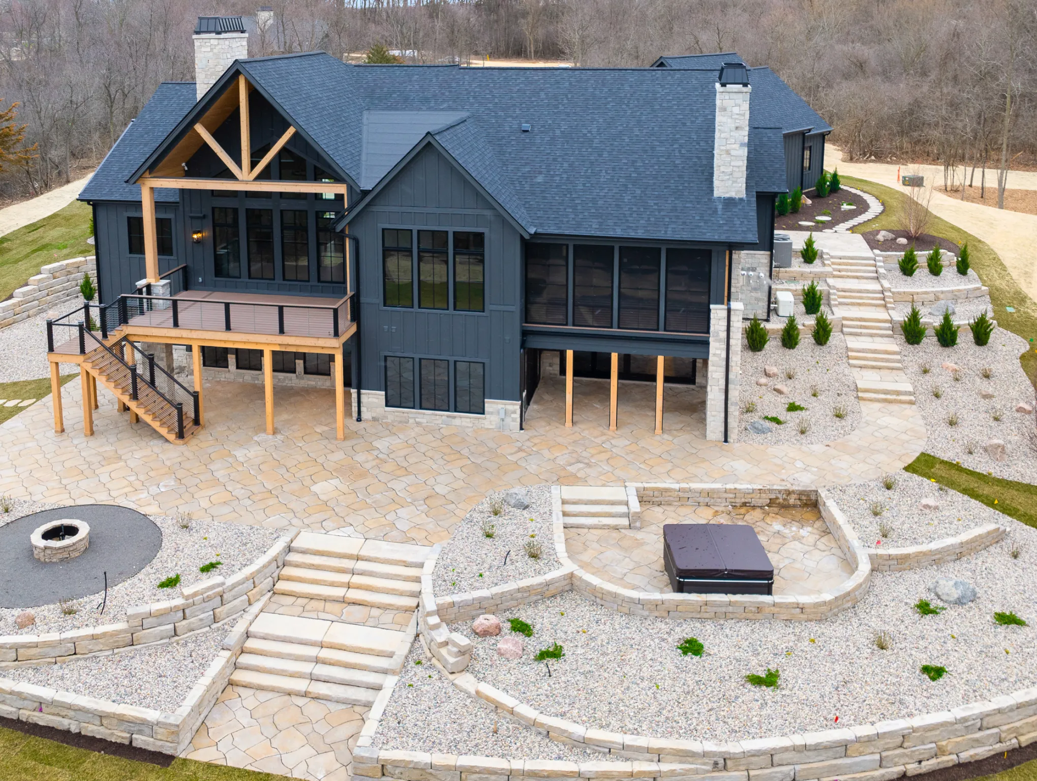 Matustik Builders constructed this stunning home in Lake Geneva, Wisconsin, with standout elements like a gourmet kitchen and an expansive family room with a beautiful stone fireplace. There's also a built in bar and a wine cellar perfect for entertaining. But we feel the highlight is the spacious patio, complete with a fireplace and fully retractable screens, ideal for enjoying delightful summer evenings.