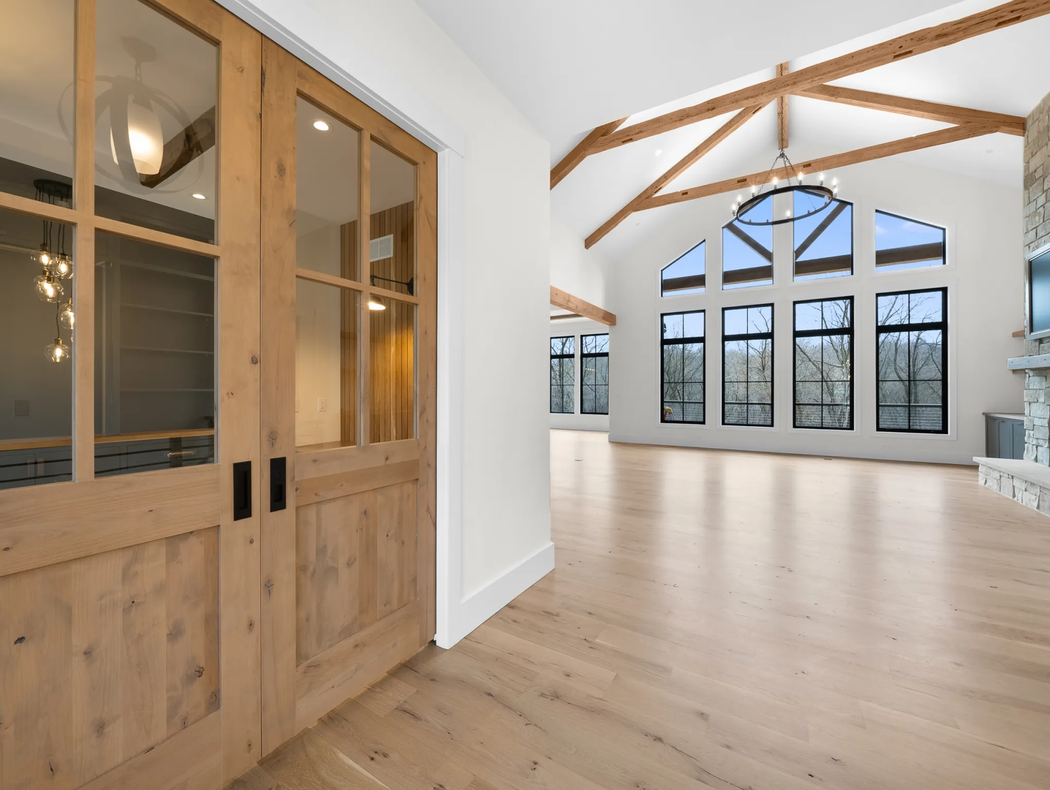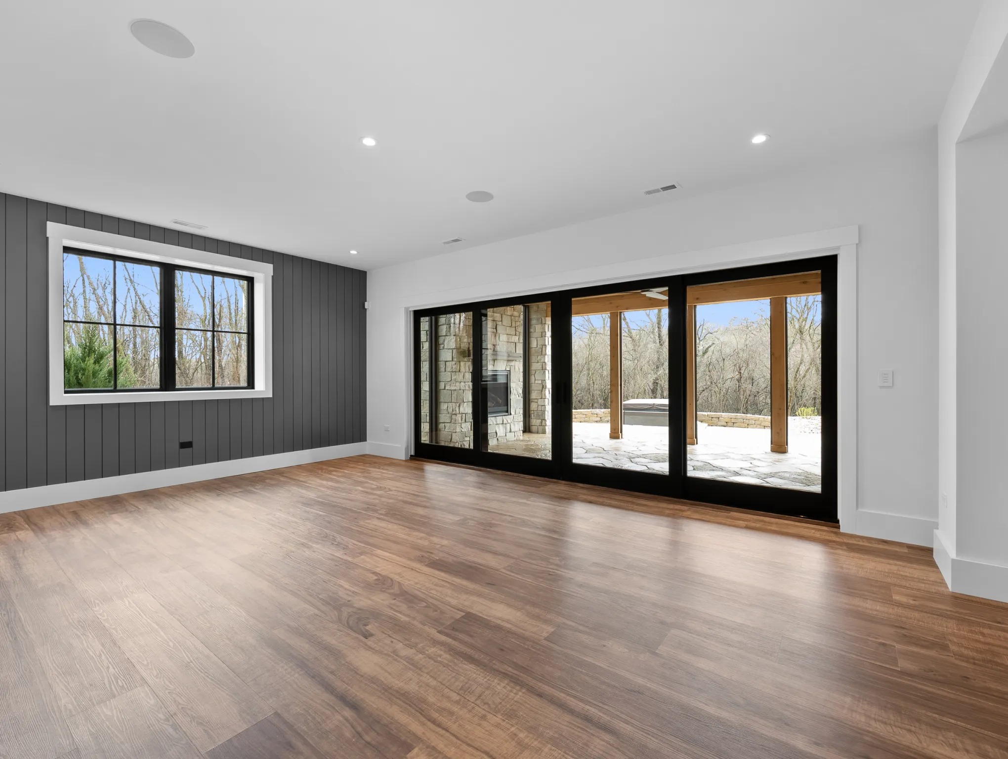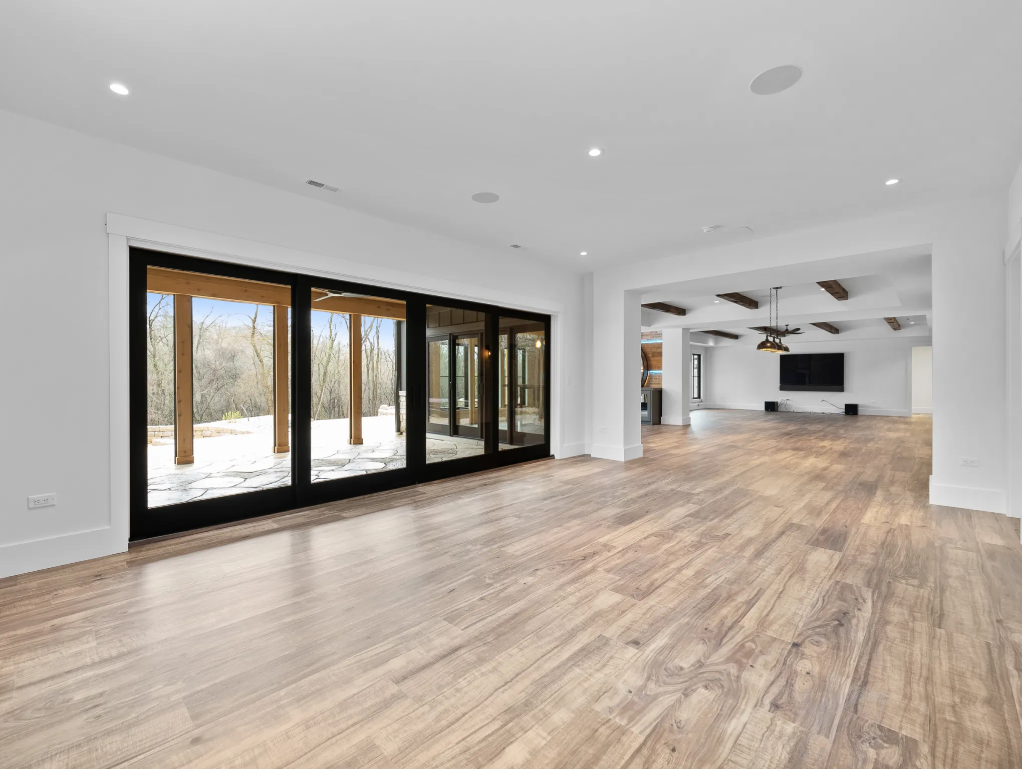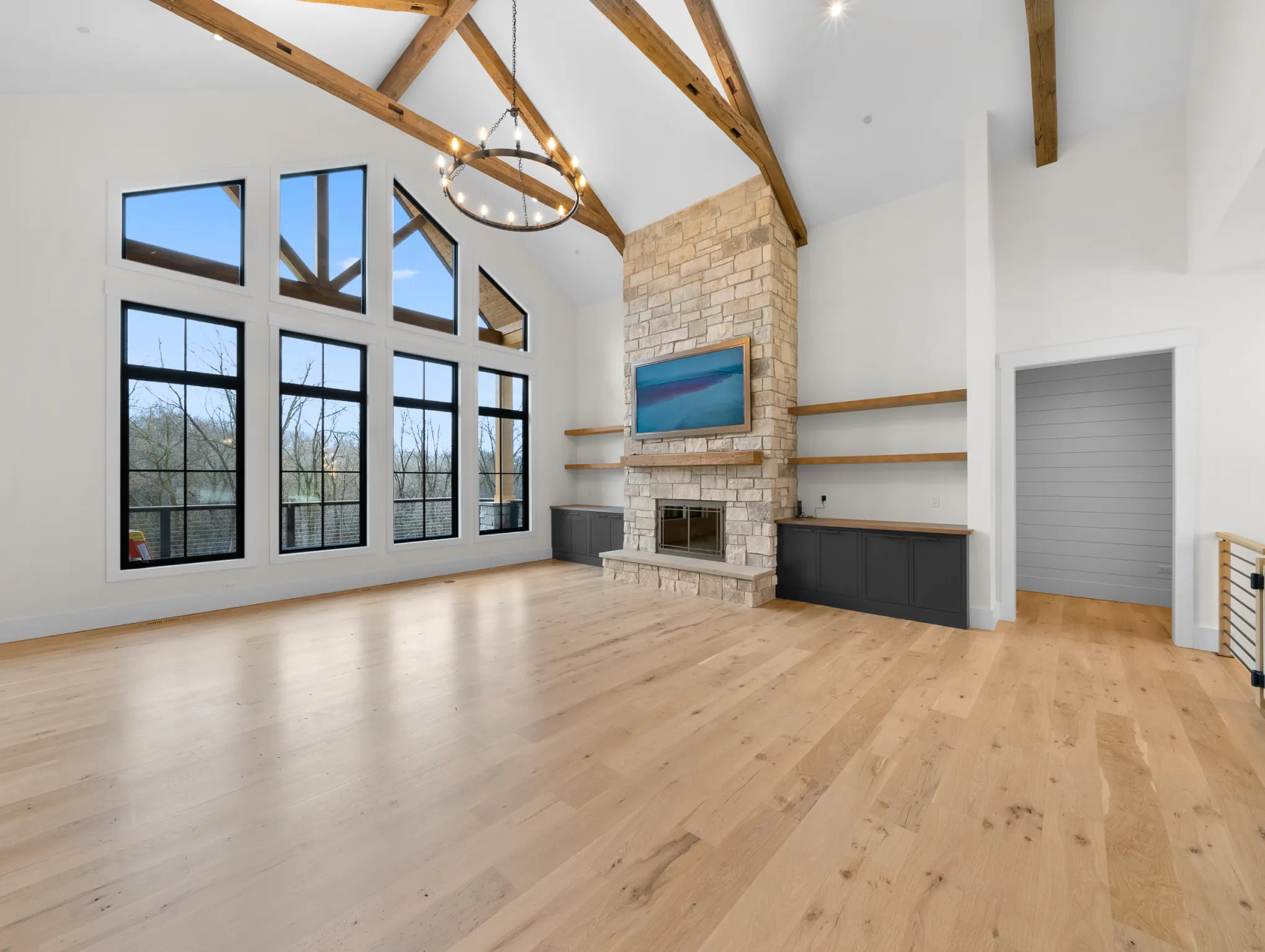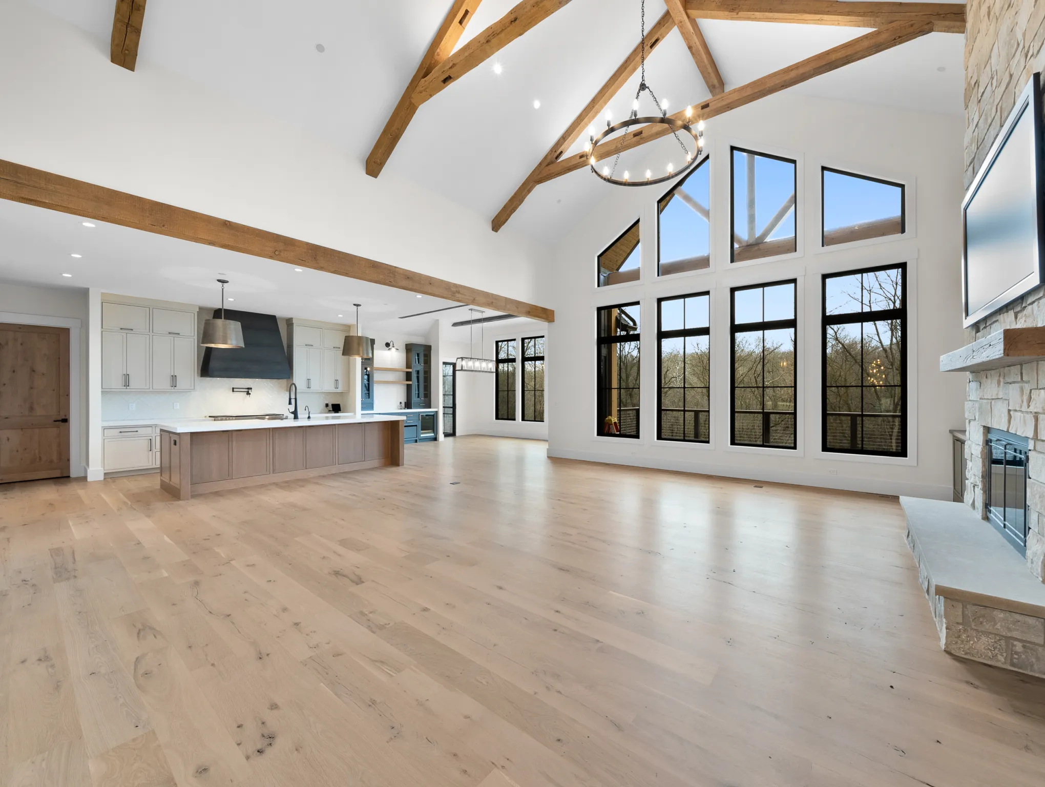 Matustik Builders constructed this stunning home in Lake Geneva, Wisconsin, with standout elements like a gourmet kitchen and an expansive family room with a beautiful stone fireplace. There's also a built in bar and a wine cellar perfect for entertaining. But we feel the highlight is the spacious patio, complete with a fireplace and fully retractable screens, ideal for enjoying delightful summer evenings.