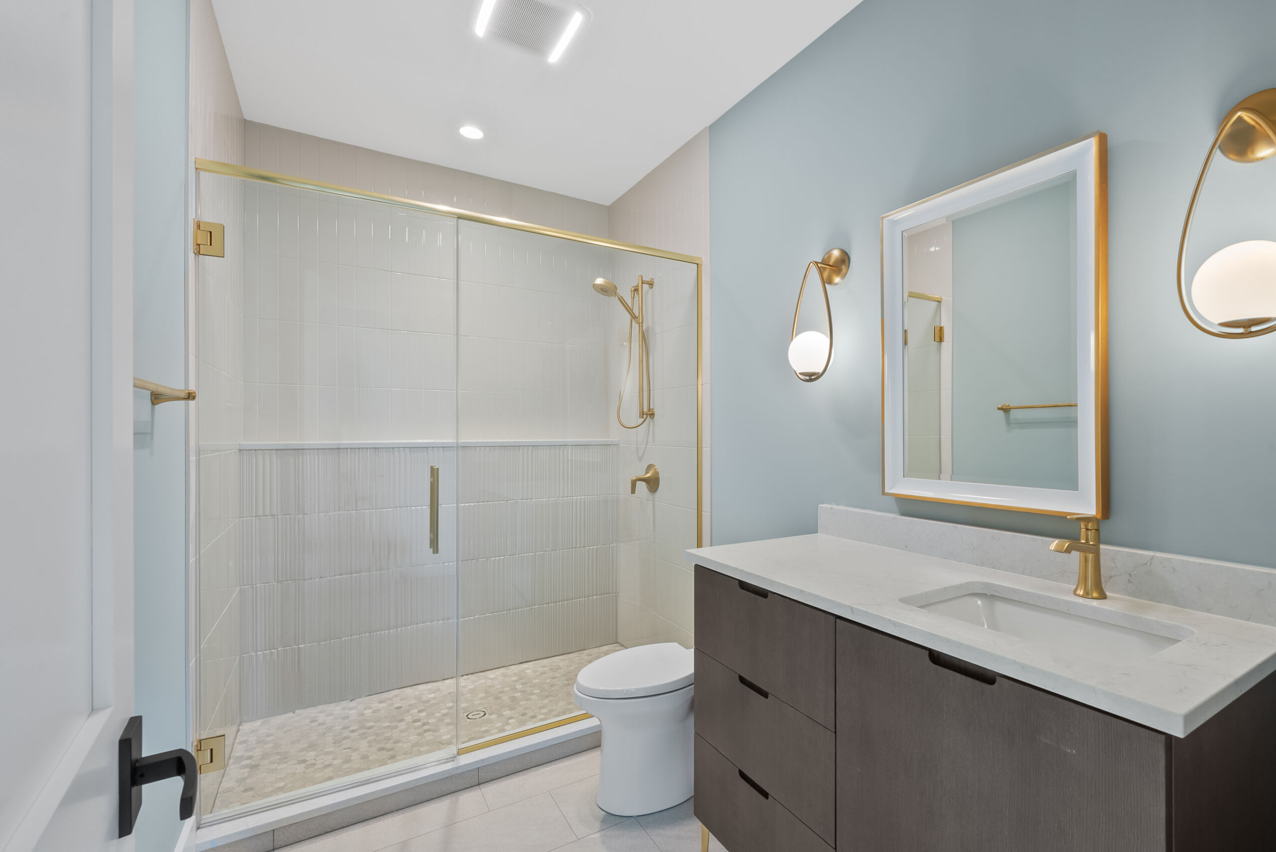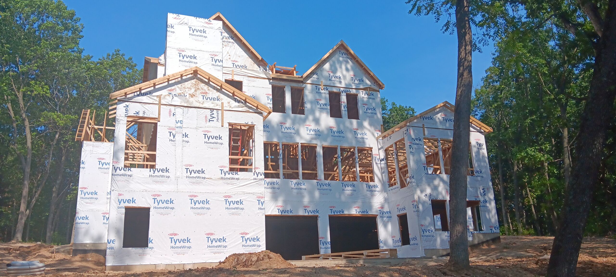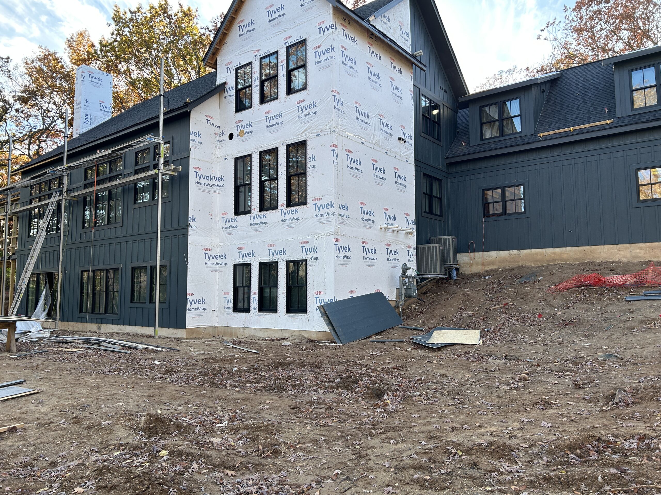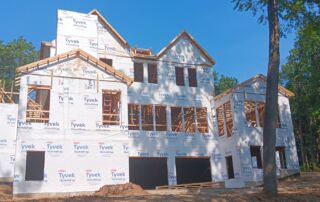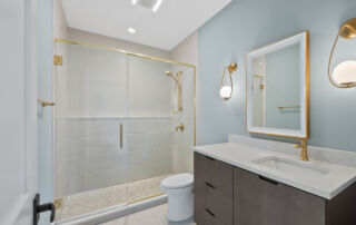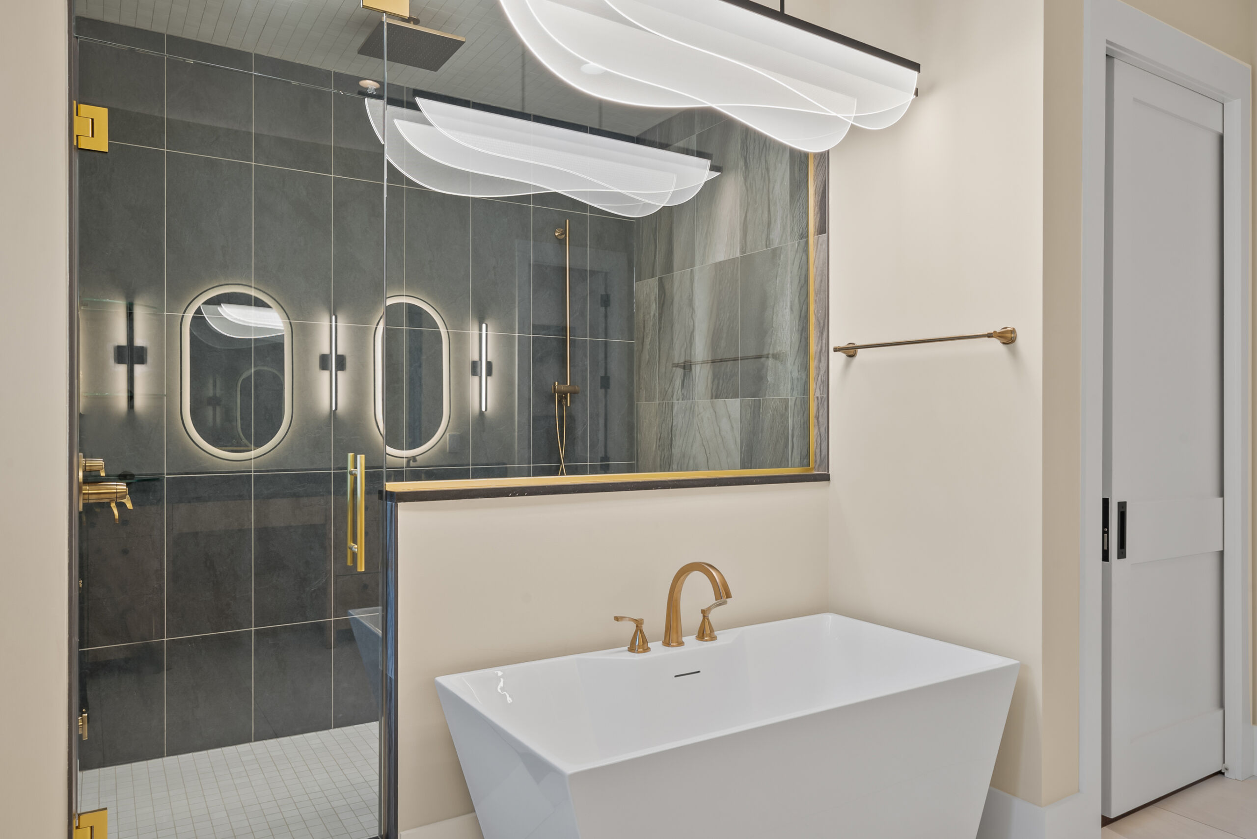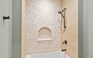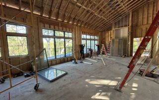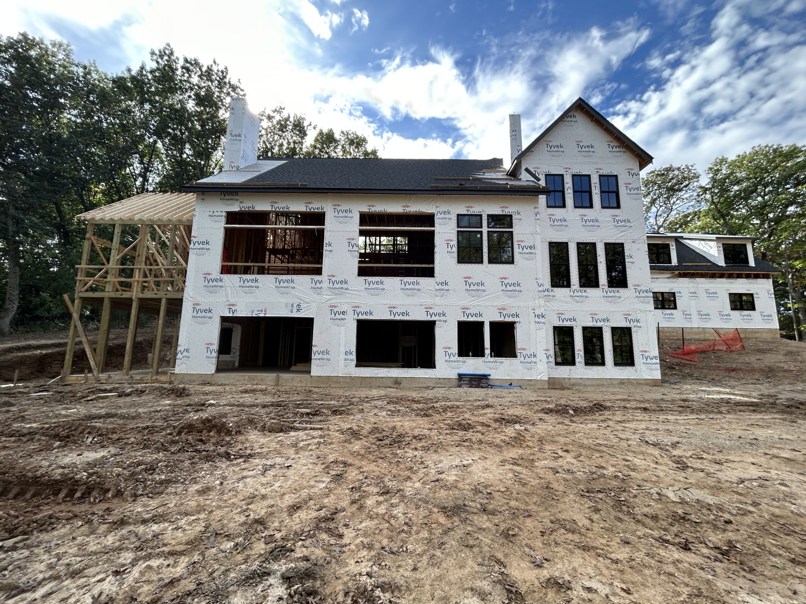 Matustik Builders crafted this stunning modern farmhouse in Lake Geneva, Wisconsin, with family living in mind. Upon entering, you're greeted by a striking floating staircase that leads to a great room with floor-to-ceiling windows offering beautiful wooded views. The gourmet kitchen features custom cabinets and warm, inviting colors. A charming three-season room with a stone fireplace and wood plank ceiling adds to the home's cozy appeal. One of the standout features is a hidden room on the lower level, cleverly concealed within wood paneling, perfect for unwinding with a bottle from the impressive wine room. The lower level also includes a finished bar area and a workout room.