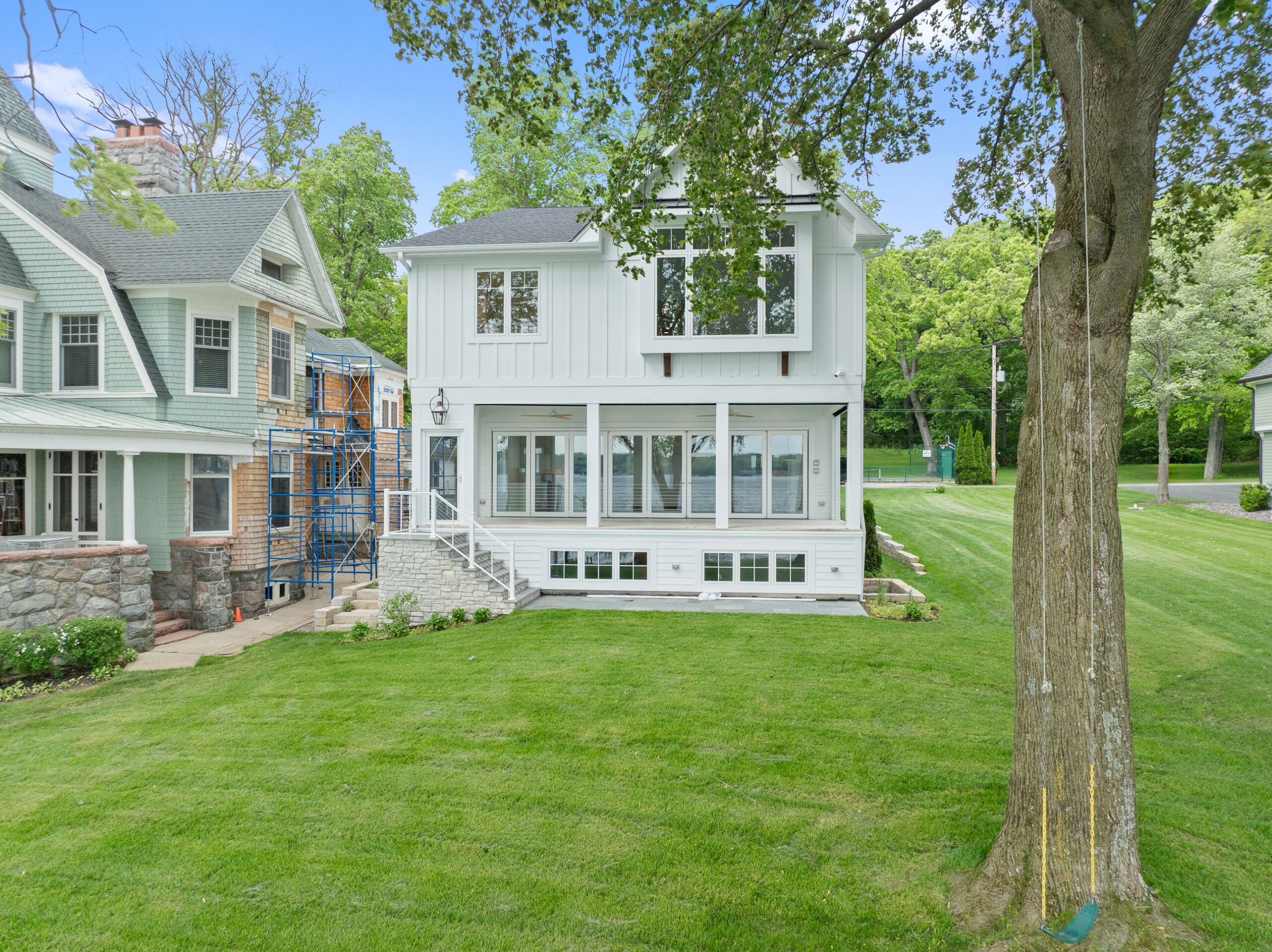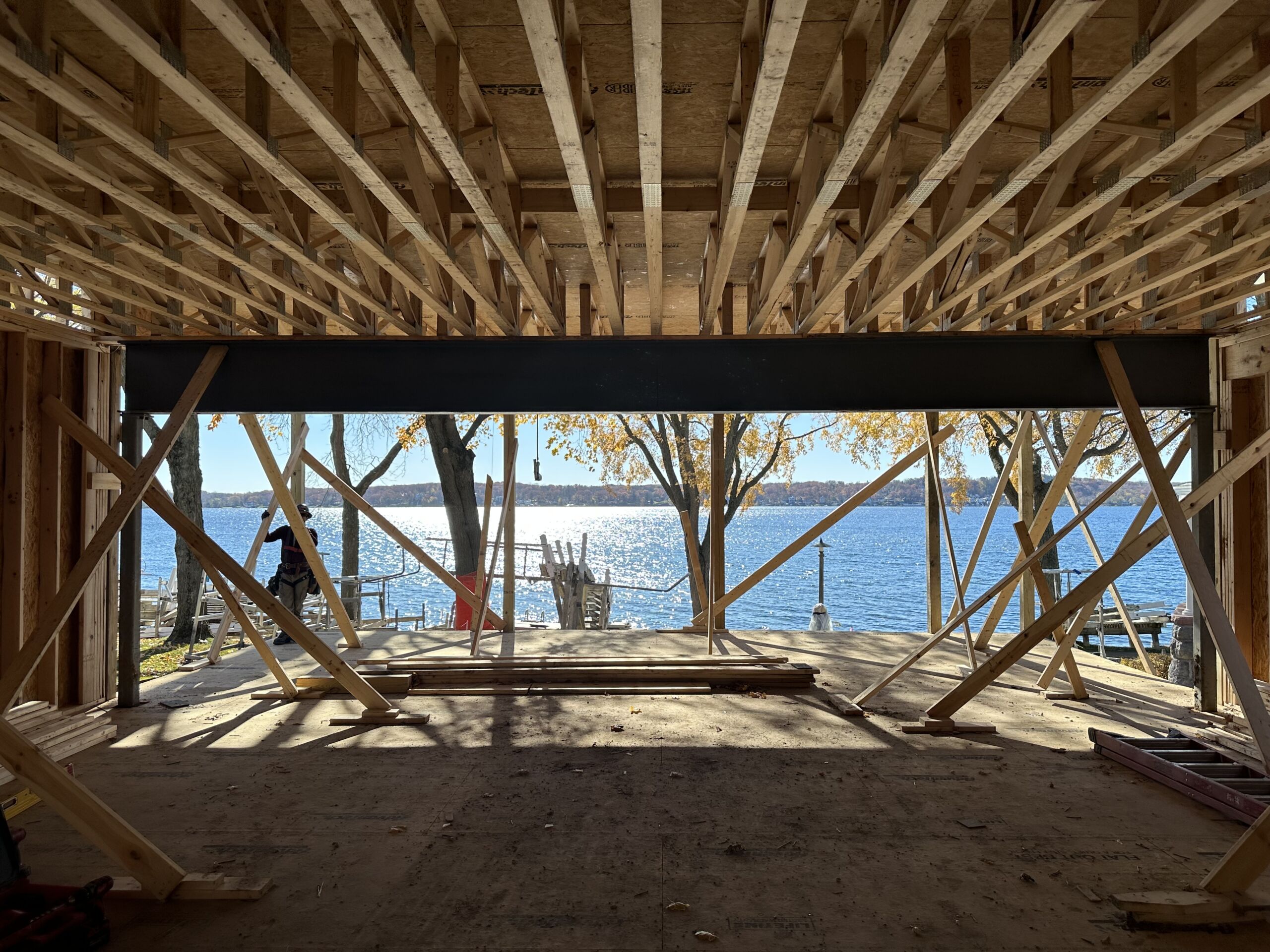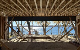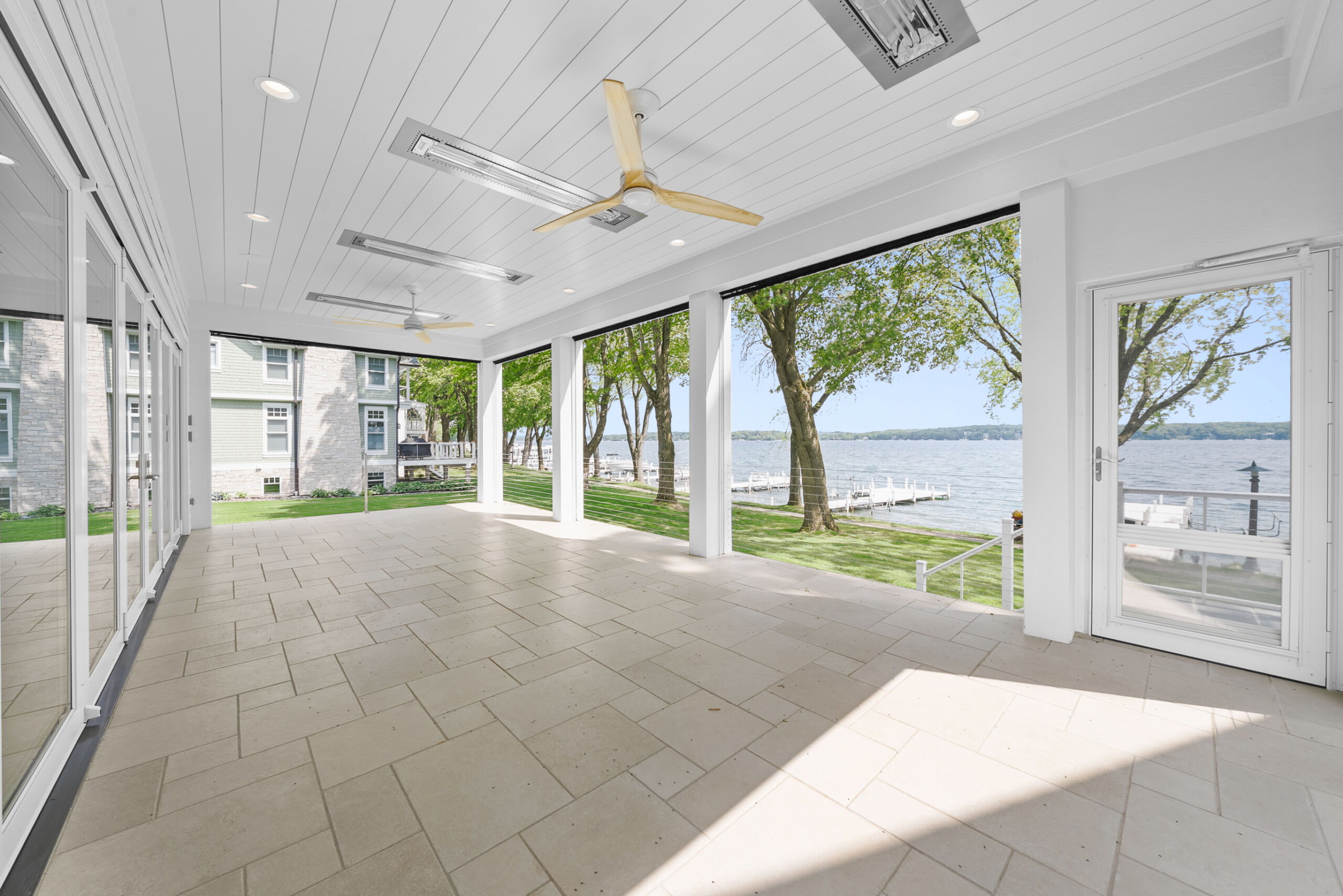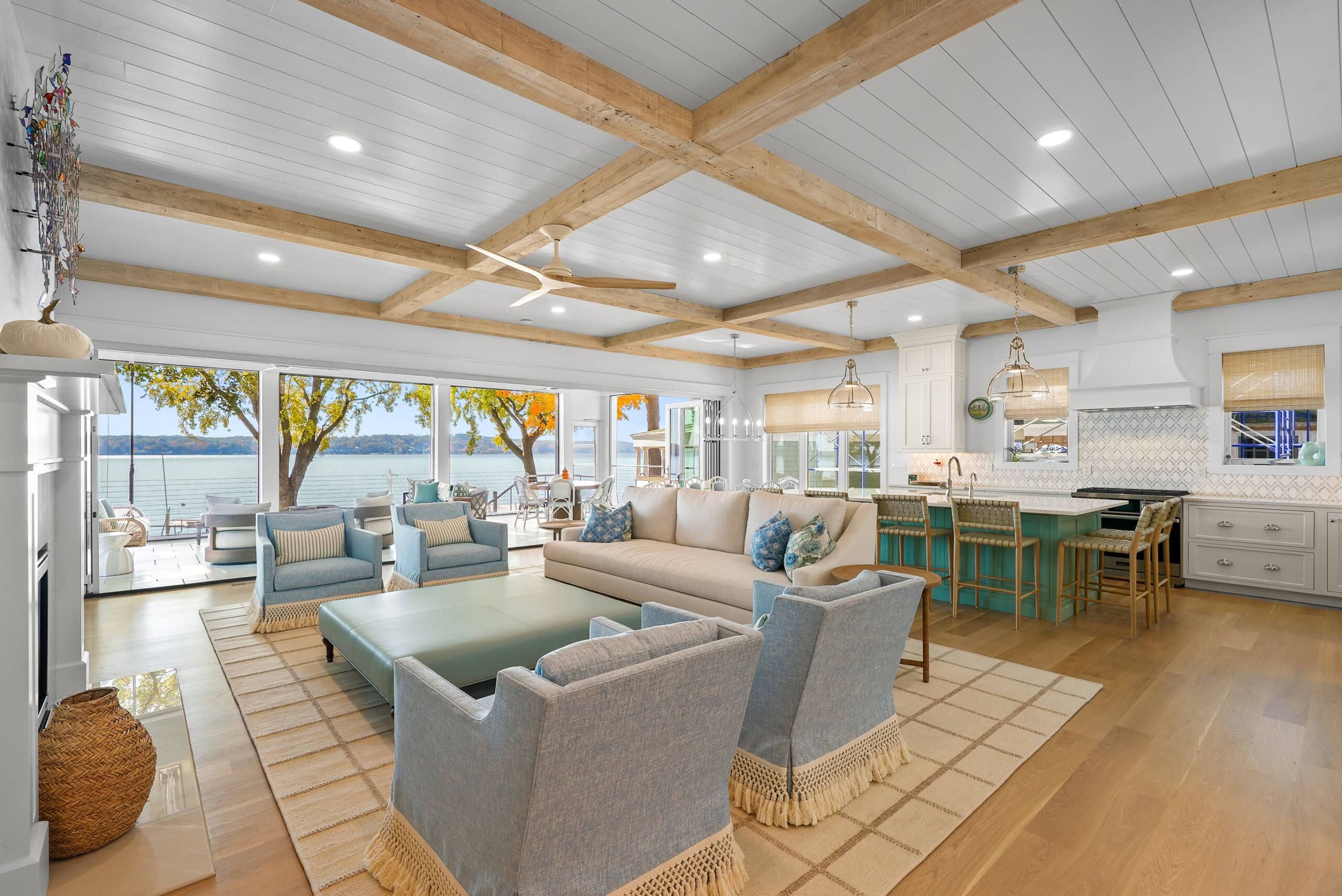 Matustik Builders collaborated with the homeowners to bring their vision to life on this stunning narrow-lot home on the shores of Lake Geneva, Wisconsin. Thoughtfully designed to maximize space and embrace breathtaking lake views, this custom home features an open floor plan perfect for entertaining. Highlights include:fully retractable doors for seamless indoor-outdoor living, exposed wood beams for timeless charm, a gourmet kitchen with a separate support kitchen, a spacious front porch with sweeping lake views and a fully finished lower level with a state-of-the-art golf simulator Every detail reflects luxury, function, and craftsmanship.