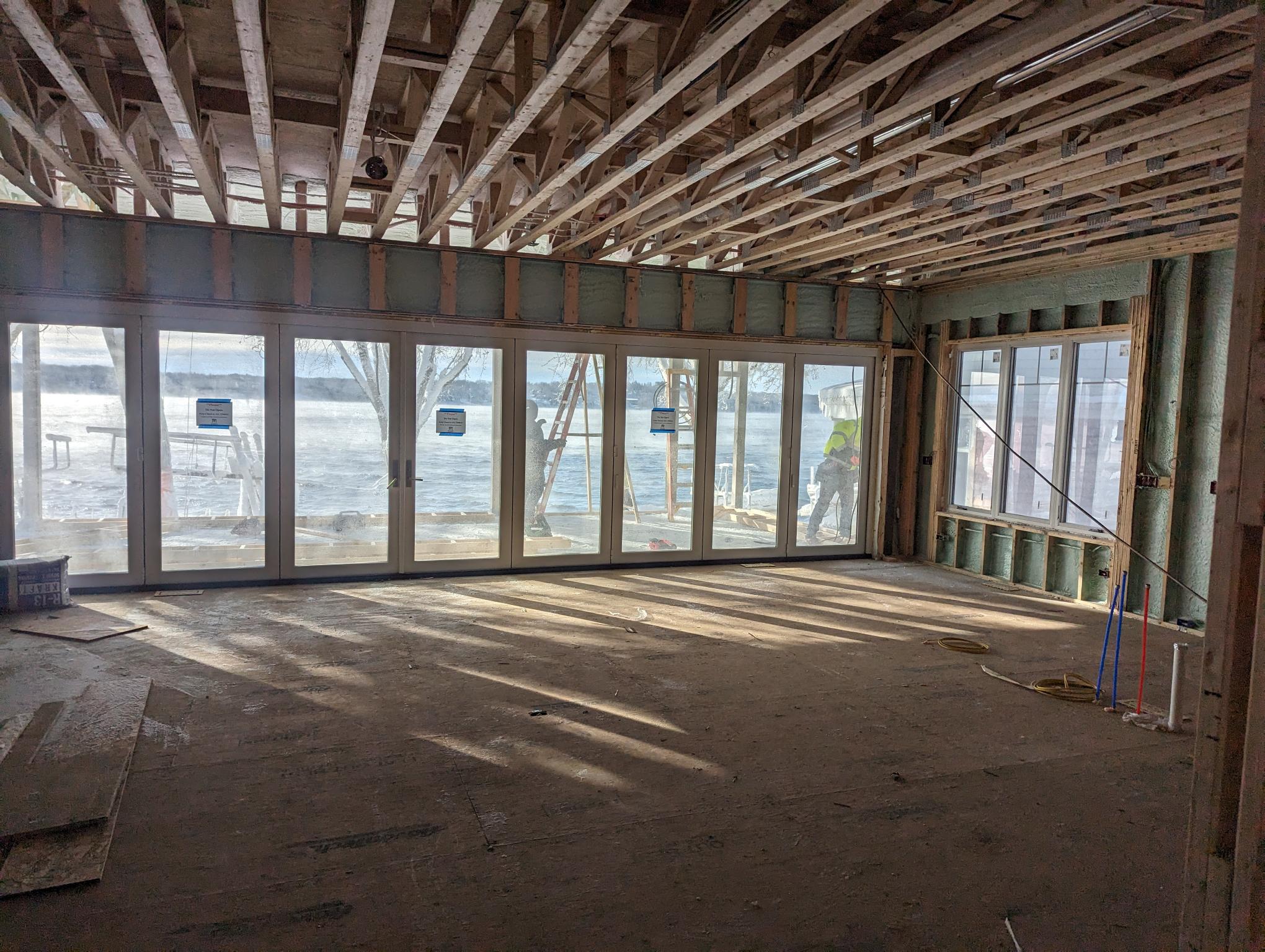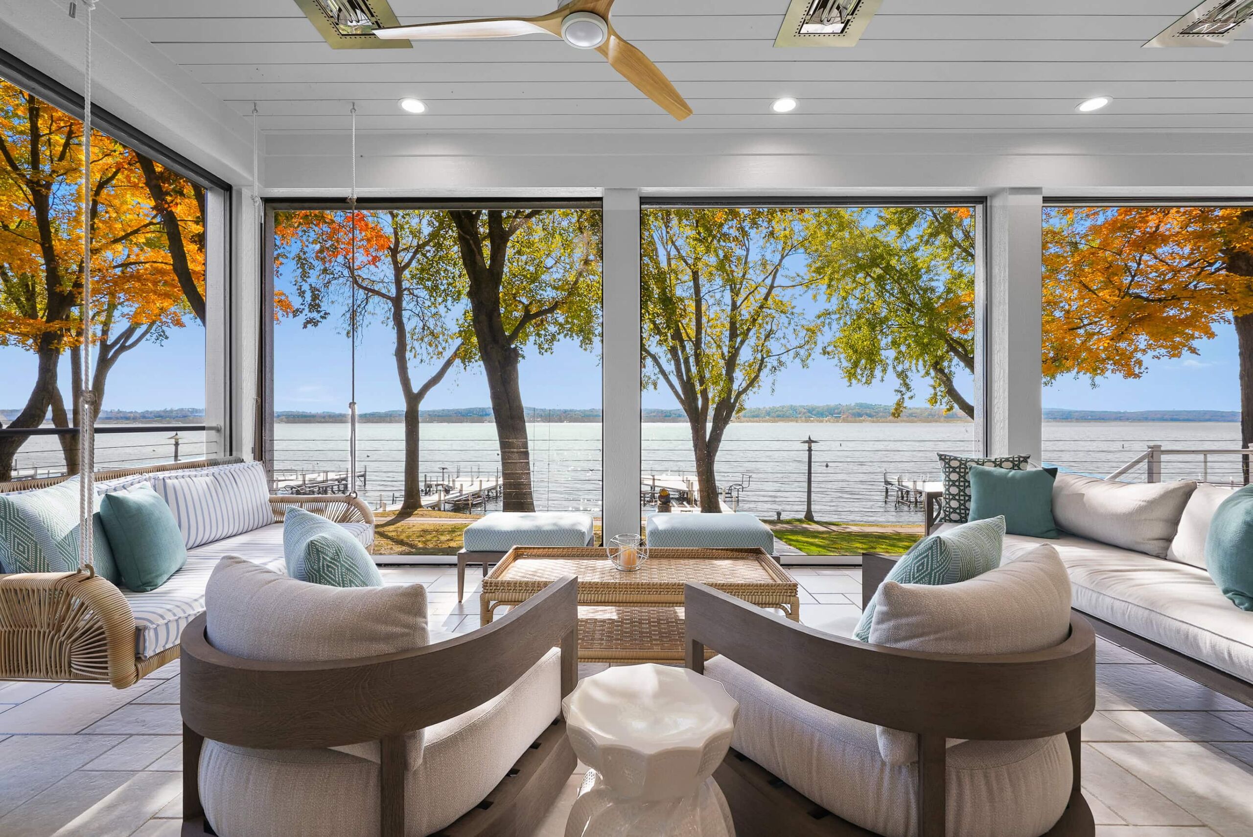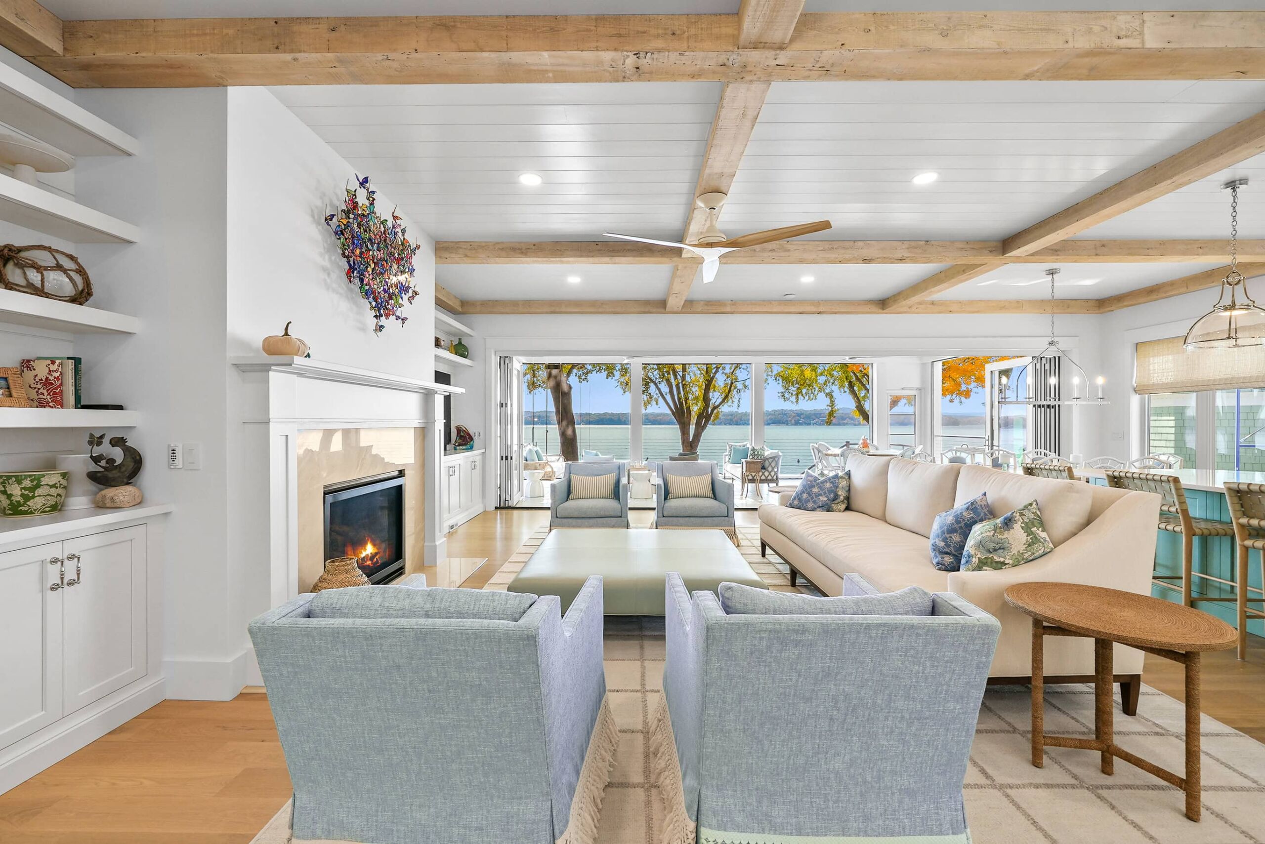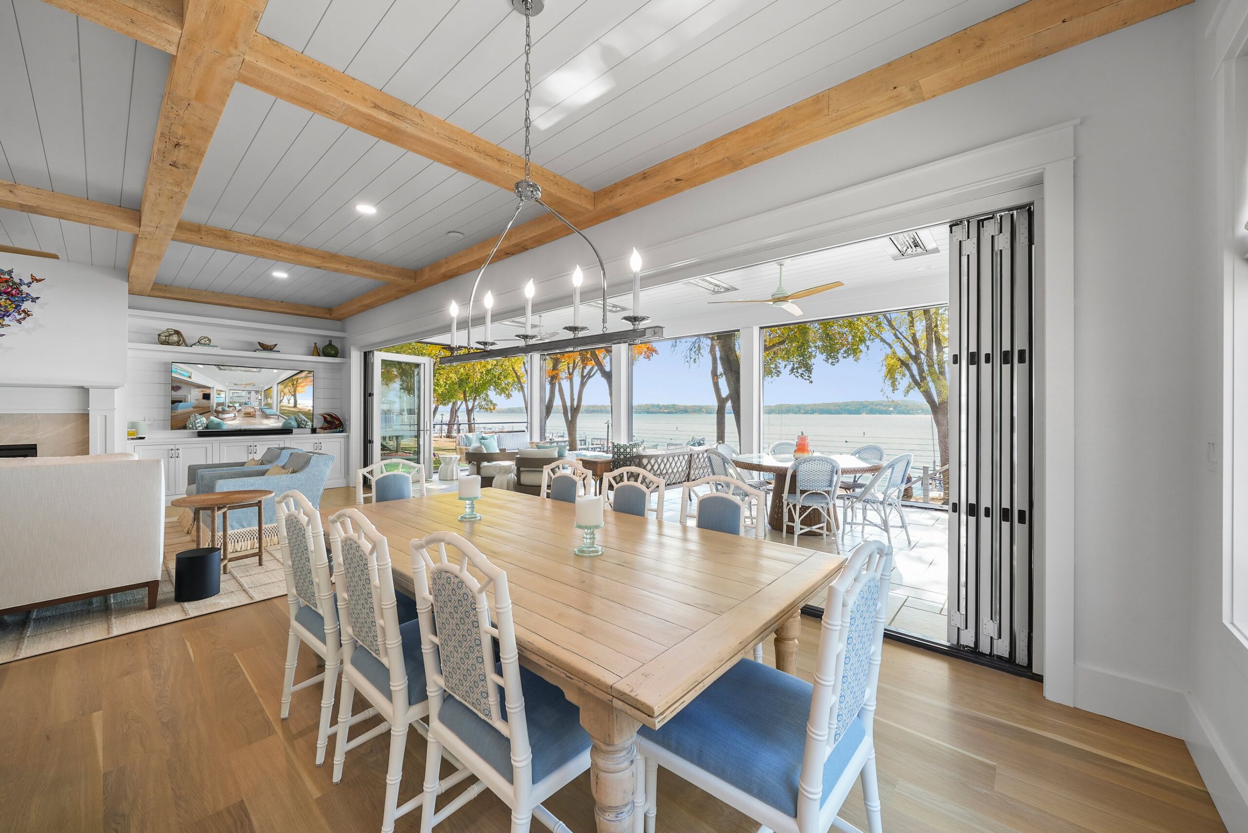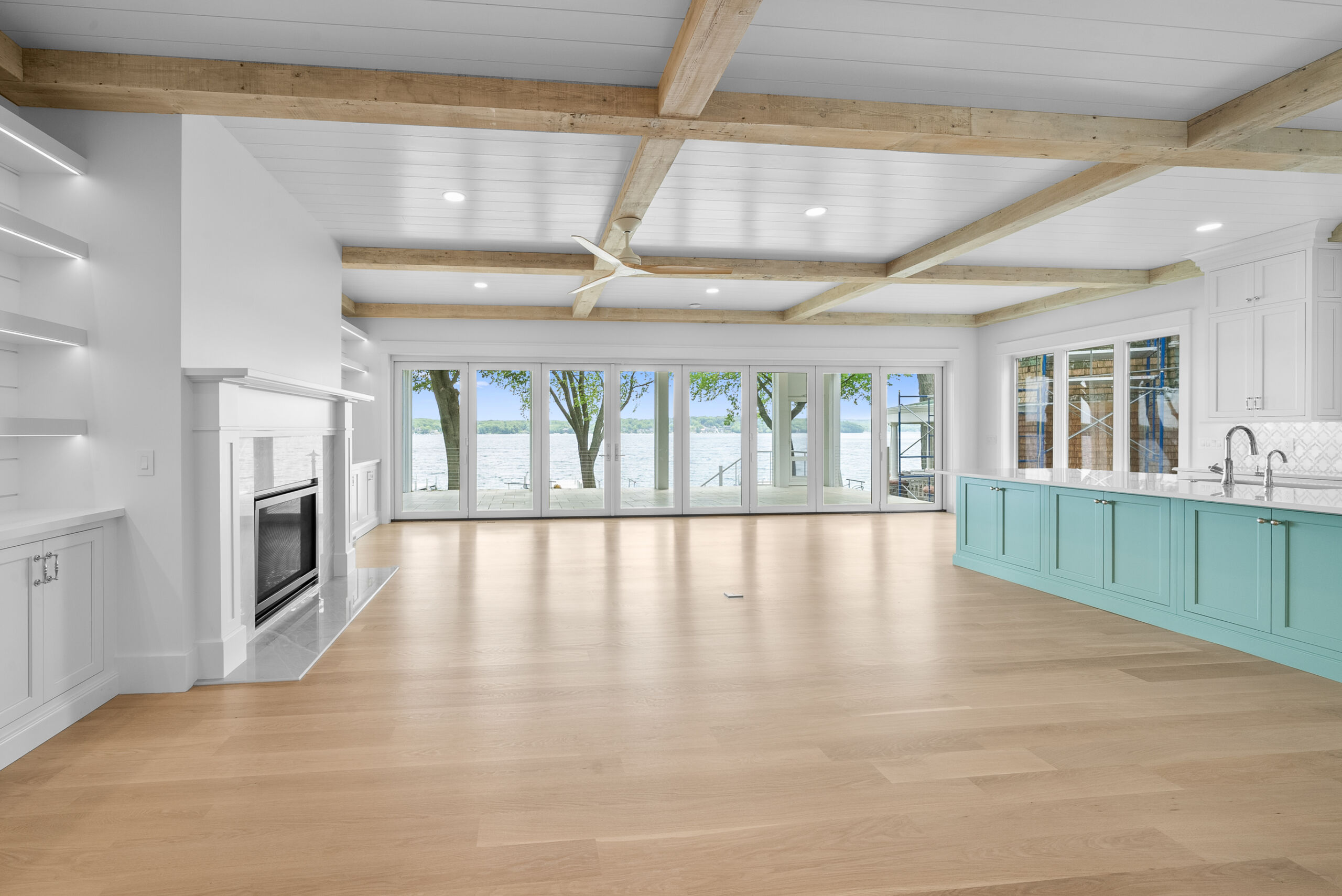 Matustik Builders collaborated with the homeowners to bring their vision to life on this stunning narrow-lot home on the shores of Lake Geneva, Wisconsin. Thoughtfully designed to maximize space and embrace breathtaking lake views, this custom home features an open floor plan perfect for entertaining. Highlights include:fully retractable doors for seamless indoor-outdoor living, exposed wood beams for timeless charm, a gourmet kitchen with a separate support kitchen, a spacious front porch with sweeping lake views and a fully finished lower level with a state-of-the-art golf simulator Every detail reflects luxury, function, and craftsmanship.