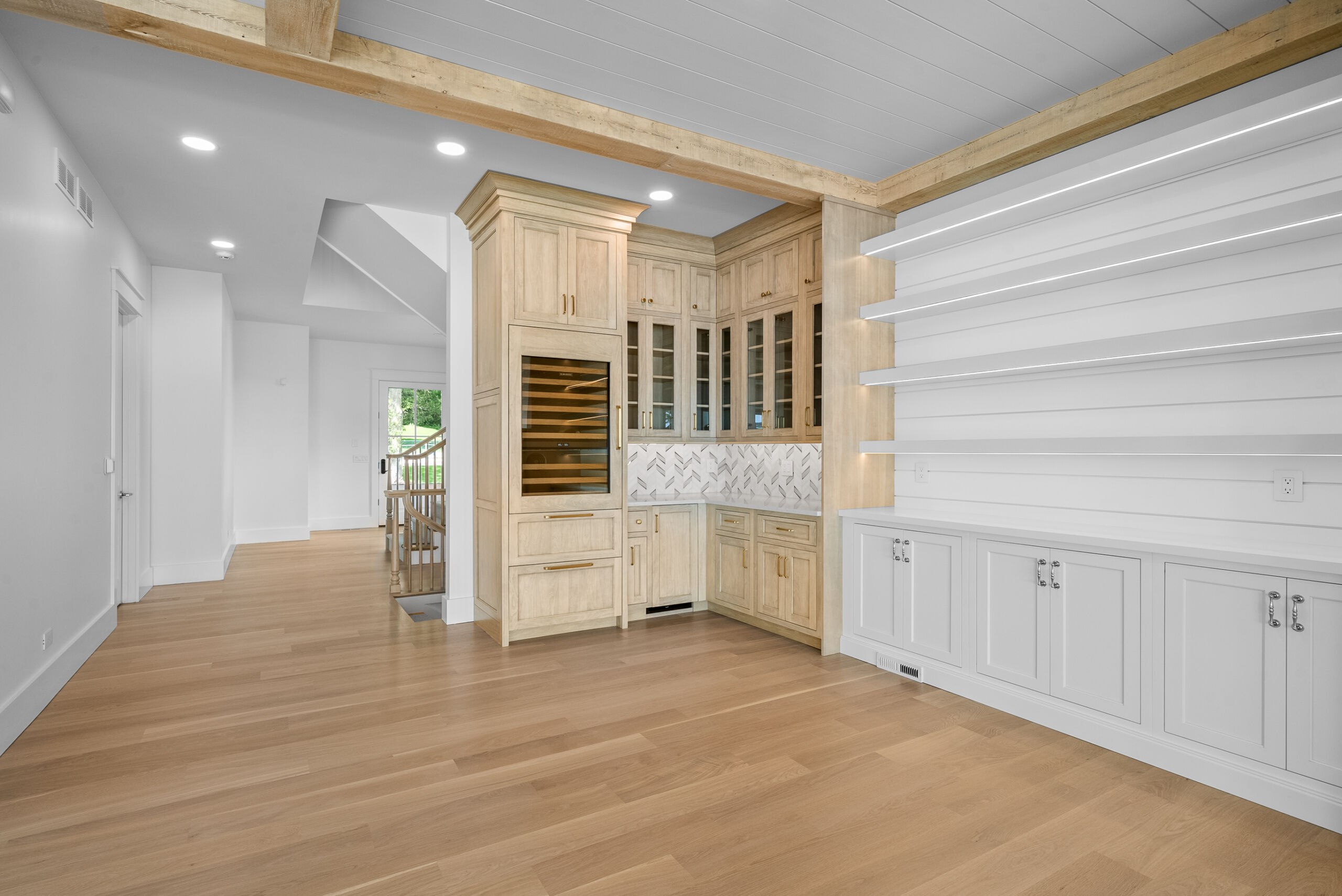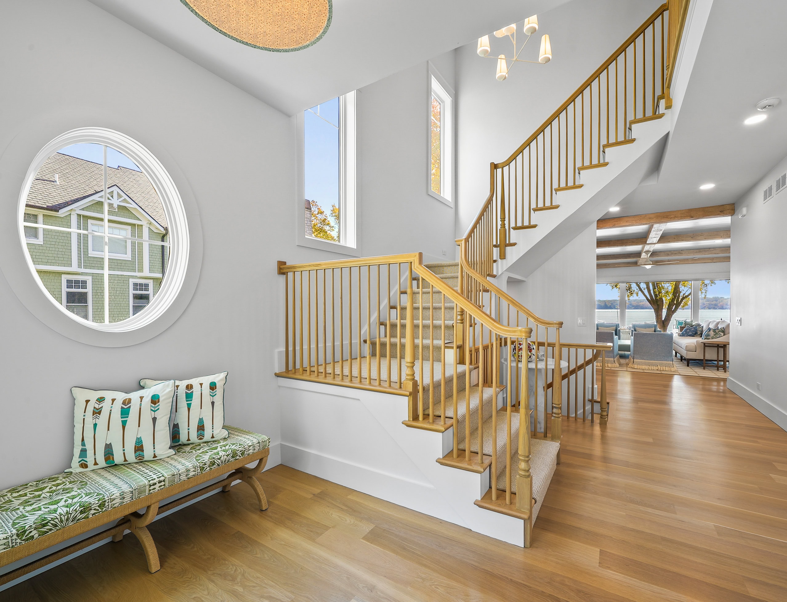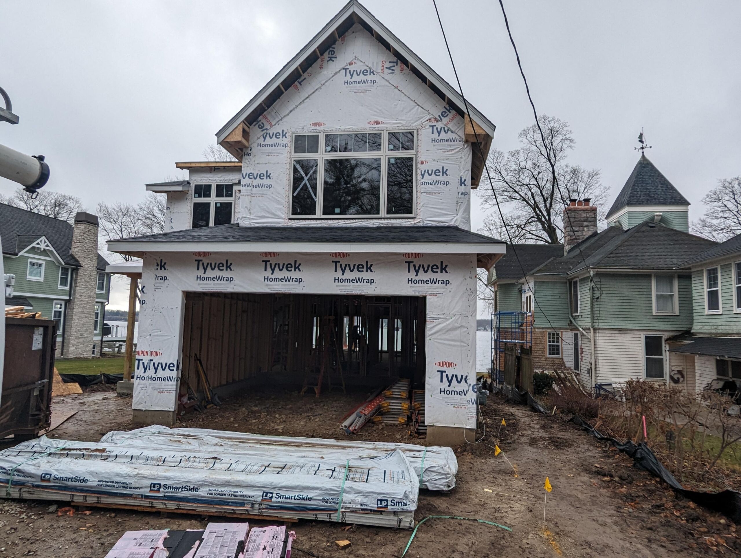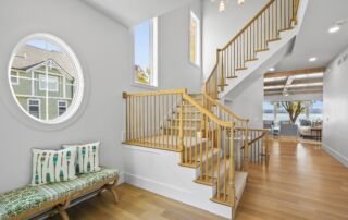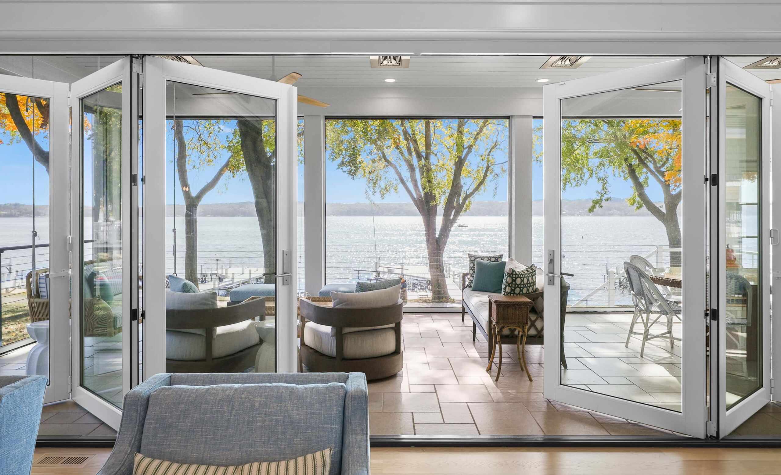 Matustik Builders collaborated with the homeowners to bring their vision to life on this stunning narrow-lot home on the shores of Lake Geneva, Wisconsin. Thoughtfully designed to maximize space and embrace breathtaking lake views, this custom home features an open floor plan perfect for entertaining. Highlights include:fully retractable doors for seamless indoor-outdoor living, exposed wood beams for timeless charm, a gourmet kitchen with a separate support kitchen, a spacious front porch with sweeping lake views and a fully finished lower level with a state-of-the-art golf simulator Every detail reflects luxury, function, and craftsmanship.