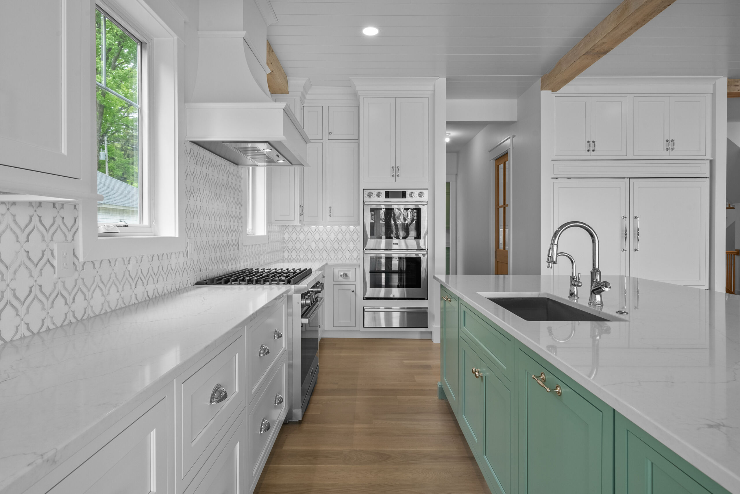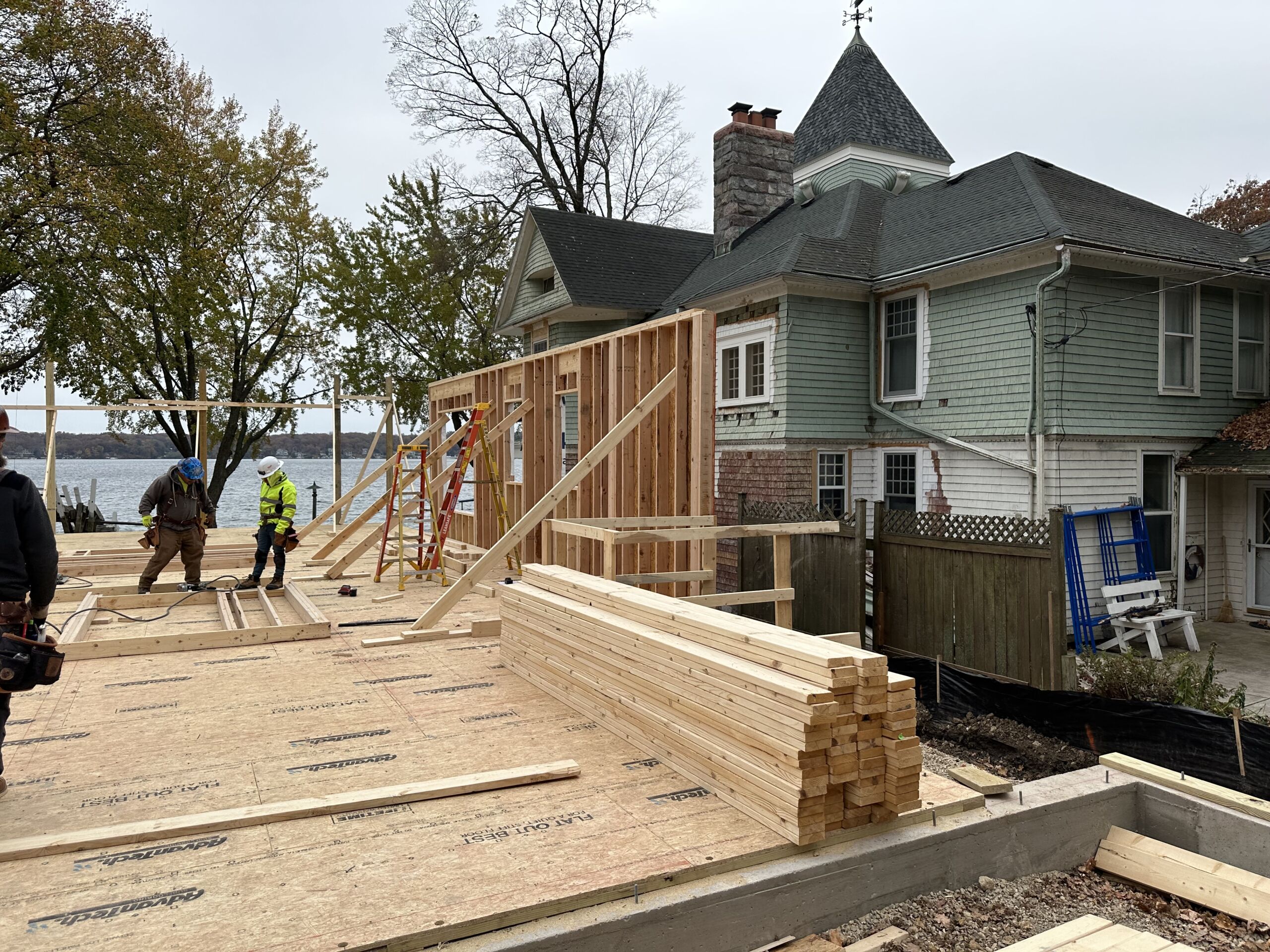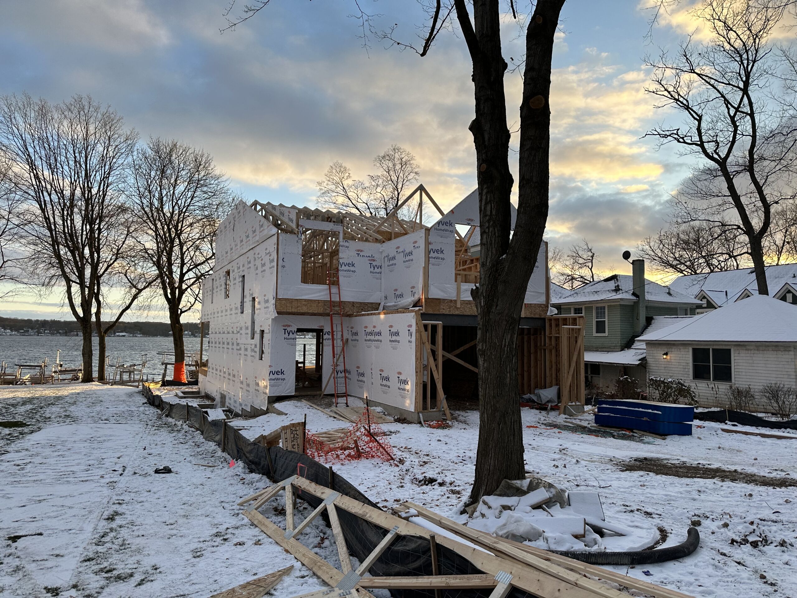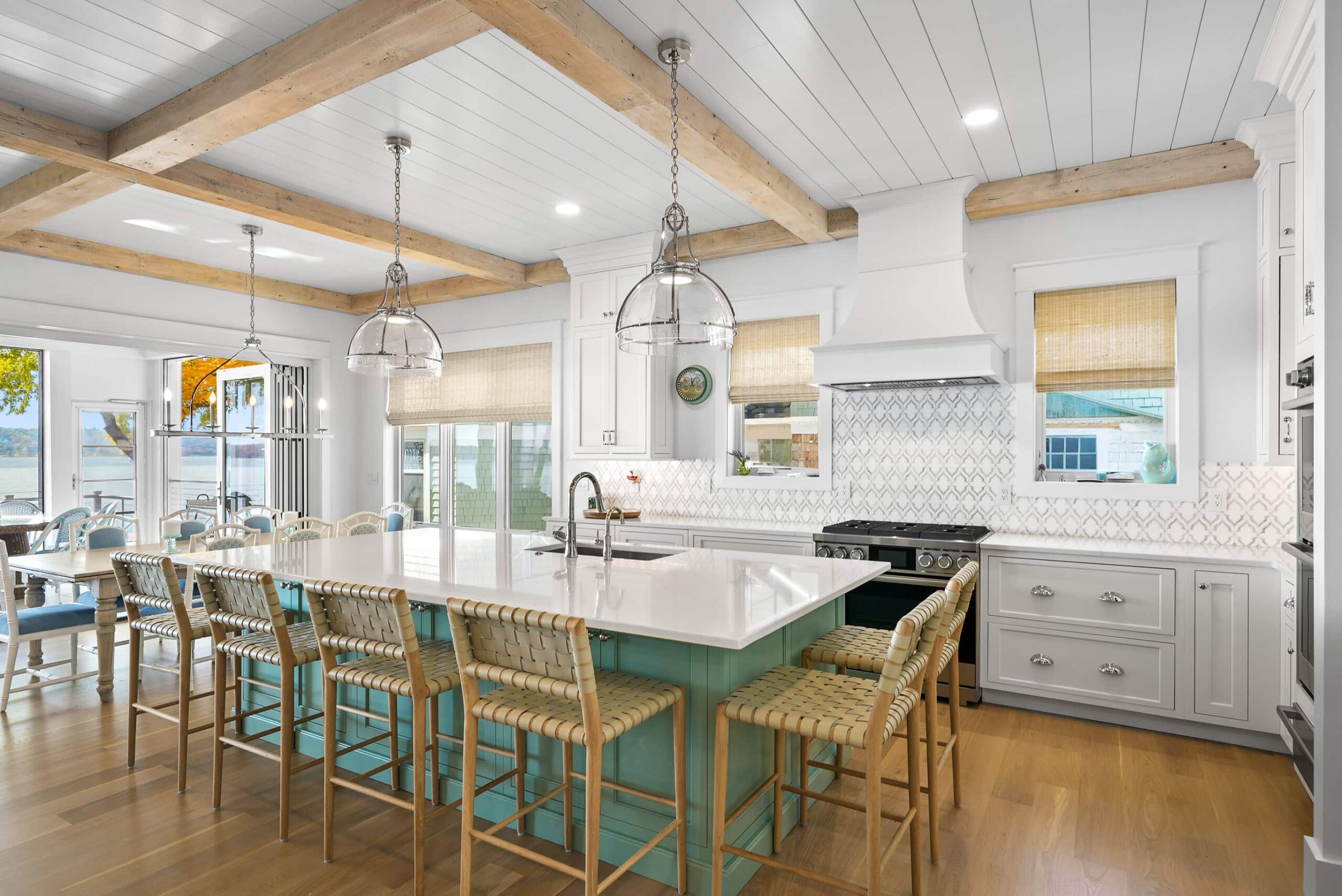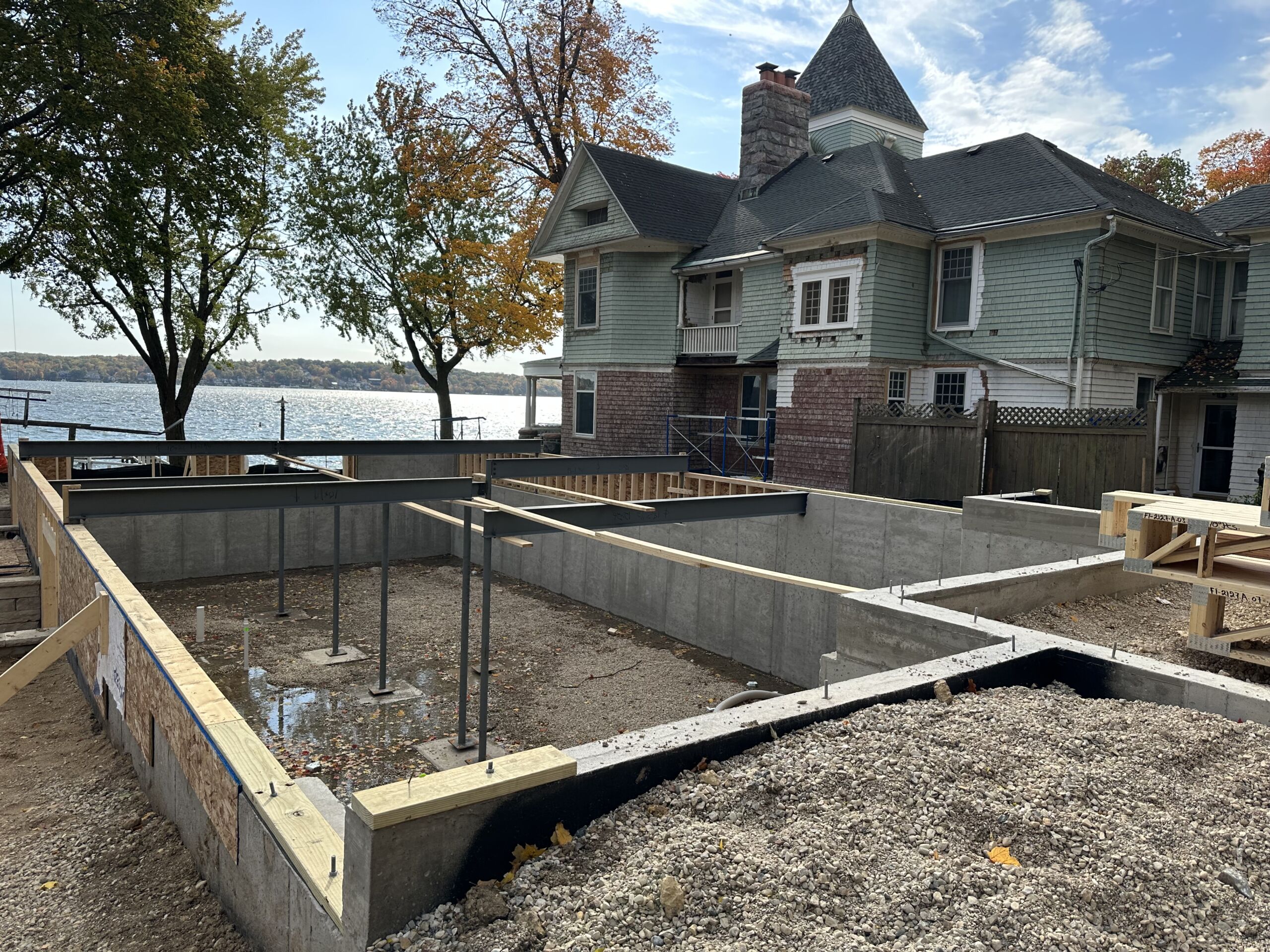Matustik Builders collaborated with the homeowners to bring their vision to life on this stunning narrow-lot home on the shores of Lake Geneva, Wisconsin. Thoughtfully designed to maximize space and embrace breathtaking lake views, this custom home features an open floor plan perfect for entertaining. Highlights include:fully retractable doors for seamless indoor-outdoor living, exposed wood beams for timeless charm, a gourmet kitchen with a separate support kitchen, a spacious front porch with sweeping lake views and a fully finished lower level with a state-of-the-art golf simulator Every detail reflects luxury, function, and craftsmanship.
