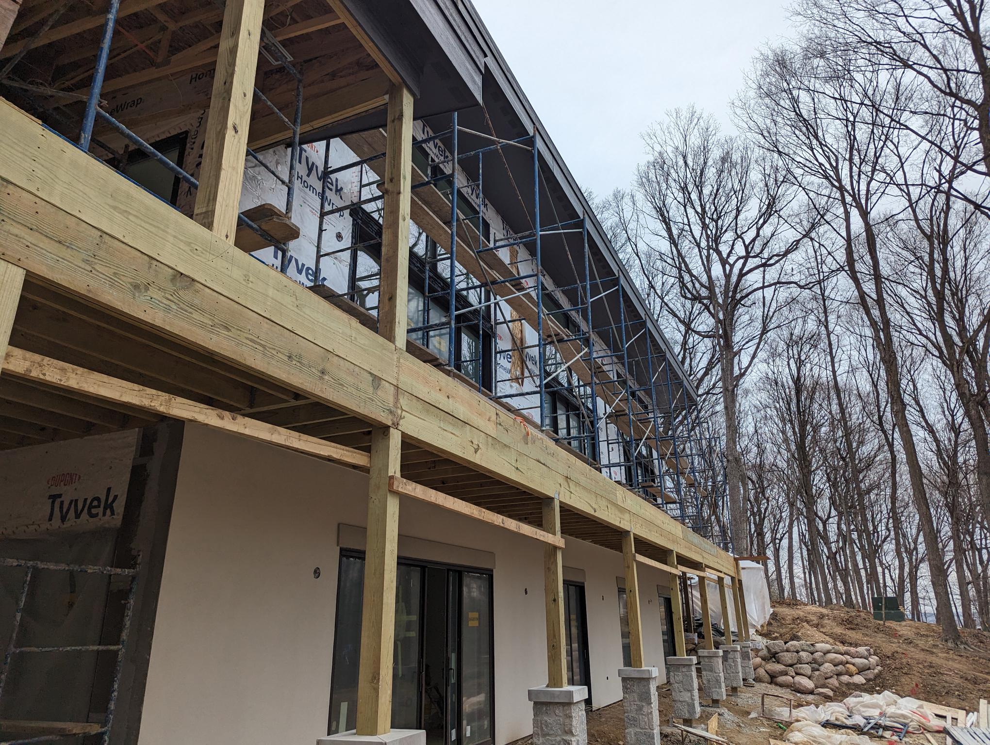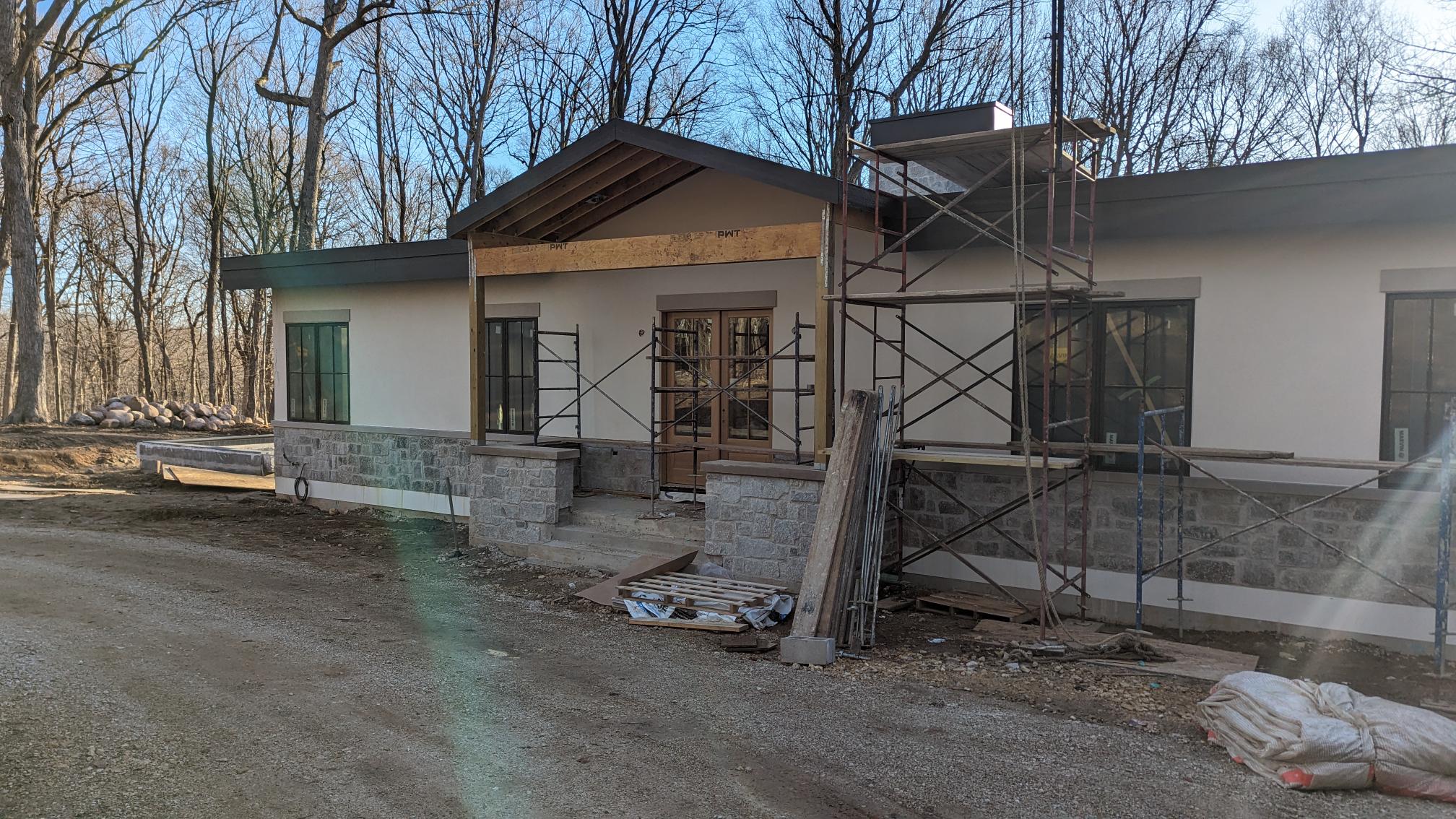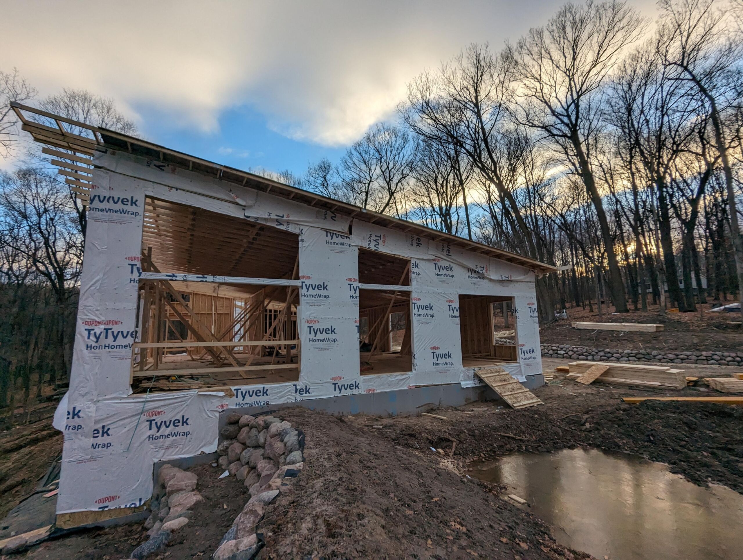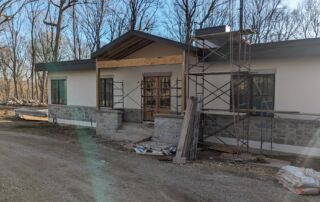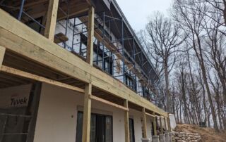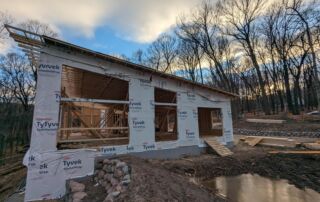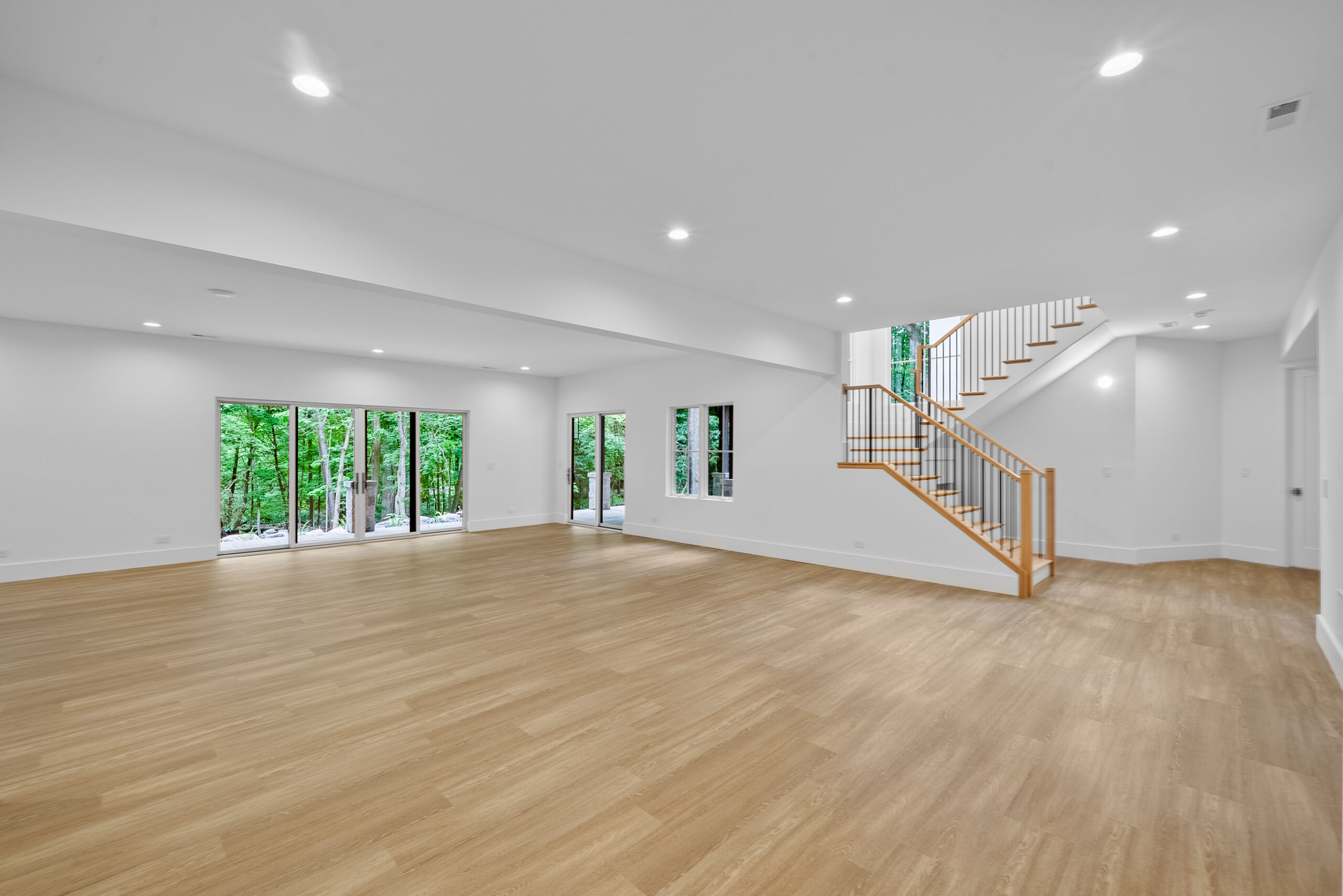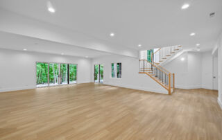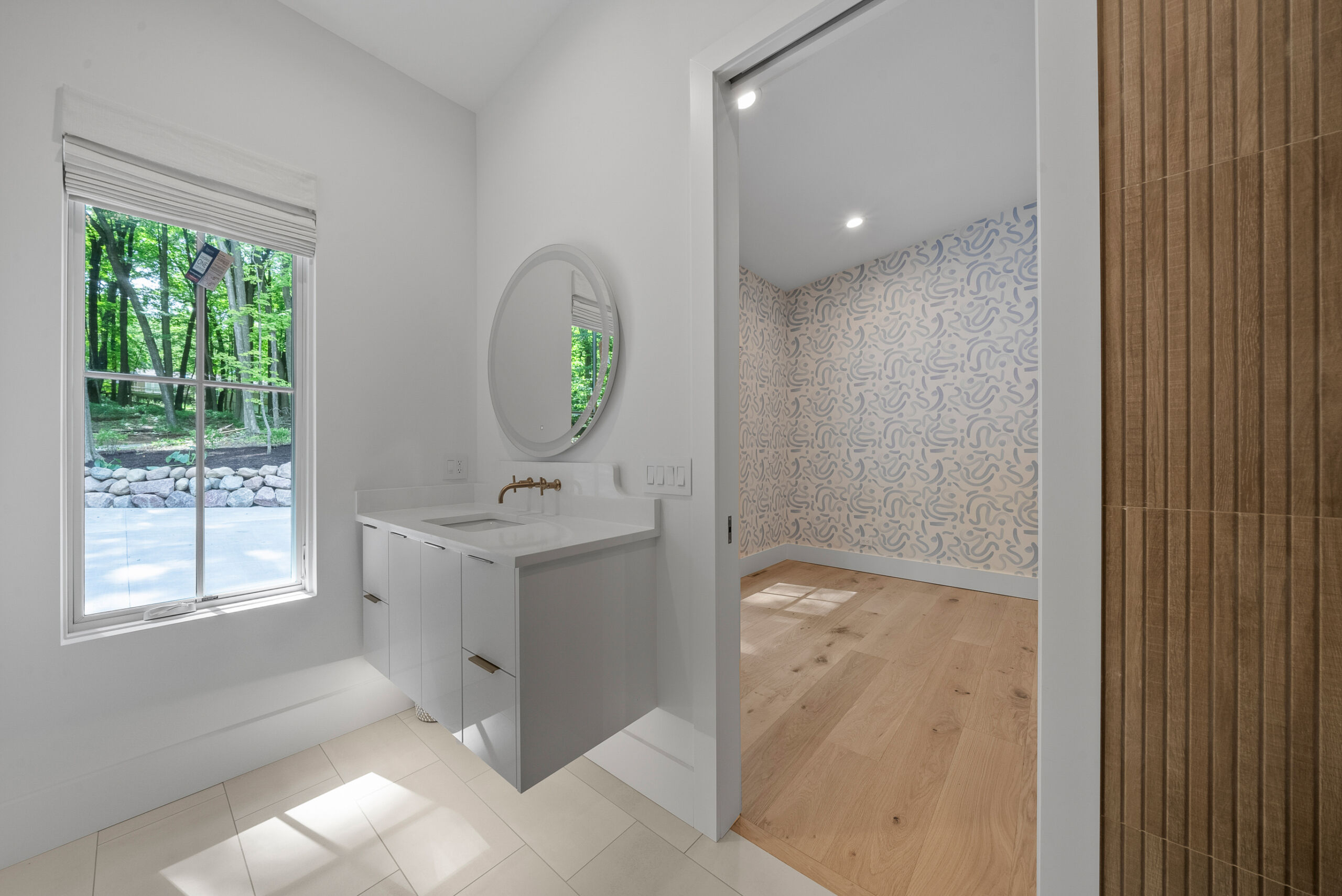 Matustik Builders collaborated with homeowners in Fontana, Wisconsin to design an amazing custom built home that perfectly complements its wooded surroundings. The home features a striking metal roof with stone and stucco finishes. Inside, the spacious great room showcases a gourmet kitchen with a large island and floor-to-ceiling windows, offering stunning views of the woods. A two-sided fireplace connects the entryway and living space, creating a warm, inviting atmosphere. The three-season room, equipped with ceiling heaters, allows for year-round enjoyment of the outdoors. Luxurious bathrooms boast solid surface countertops and floating vanities, while the outdoor pool area offers the perfect spot for family and guests to relax.