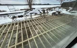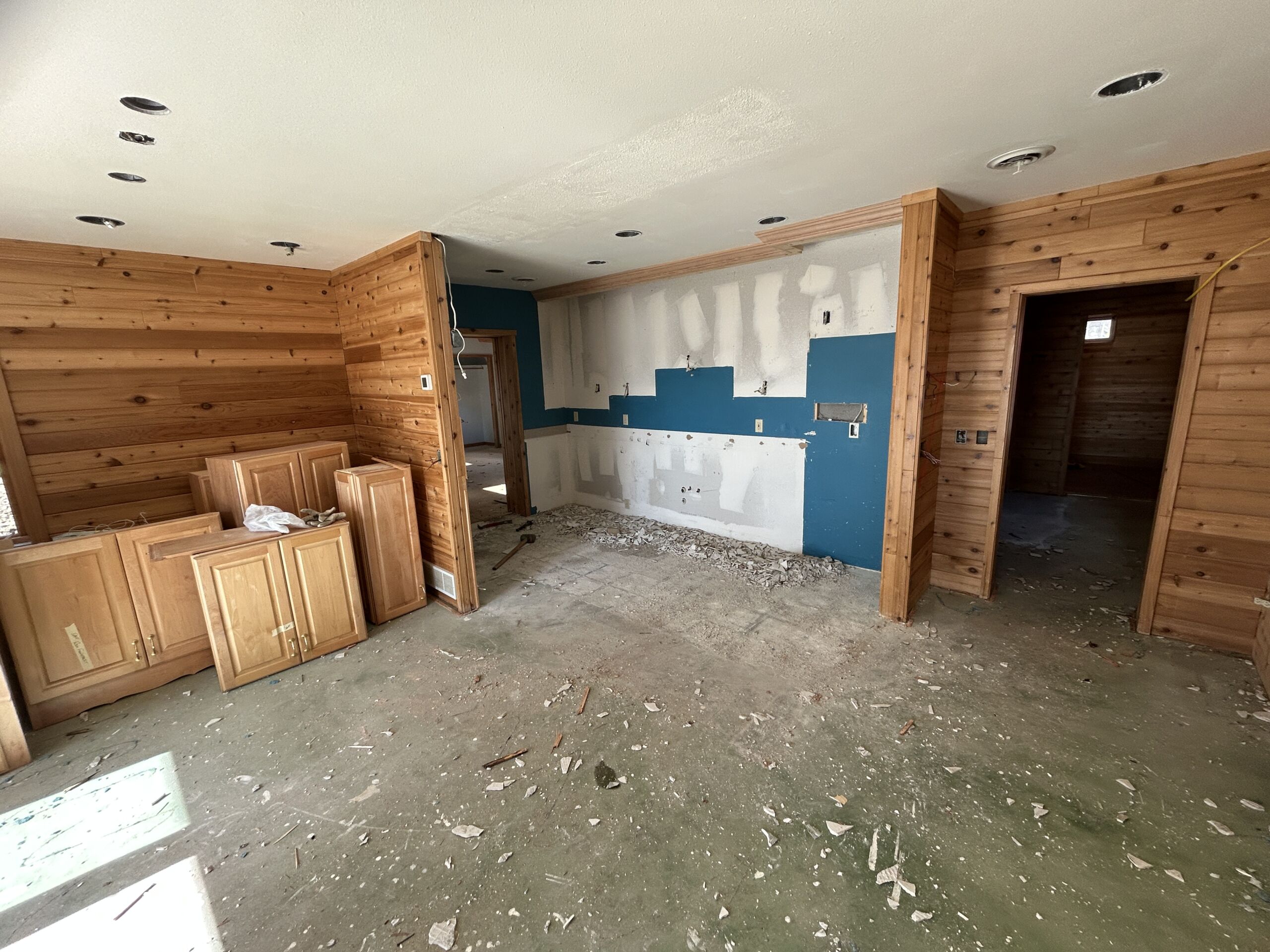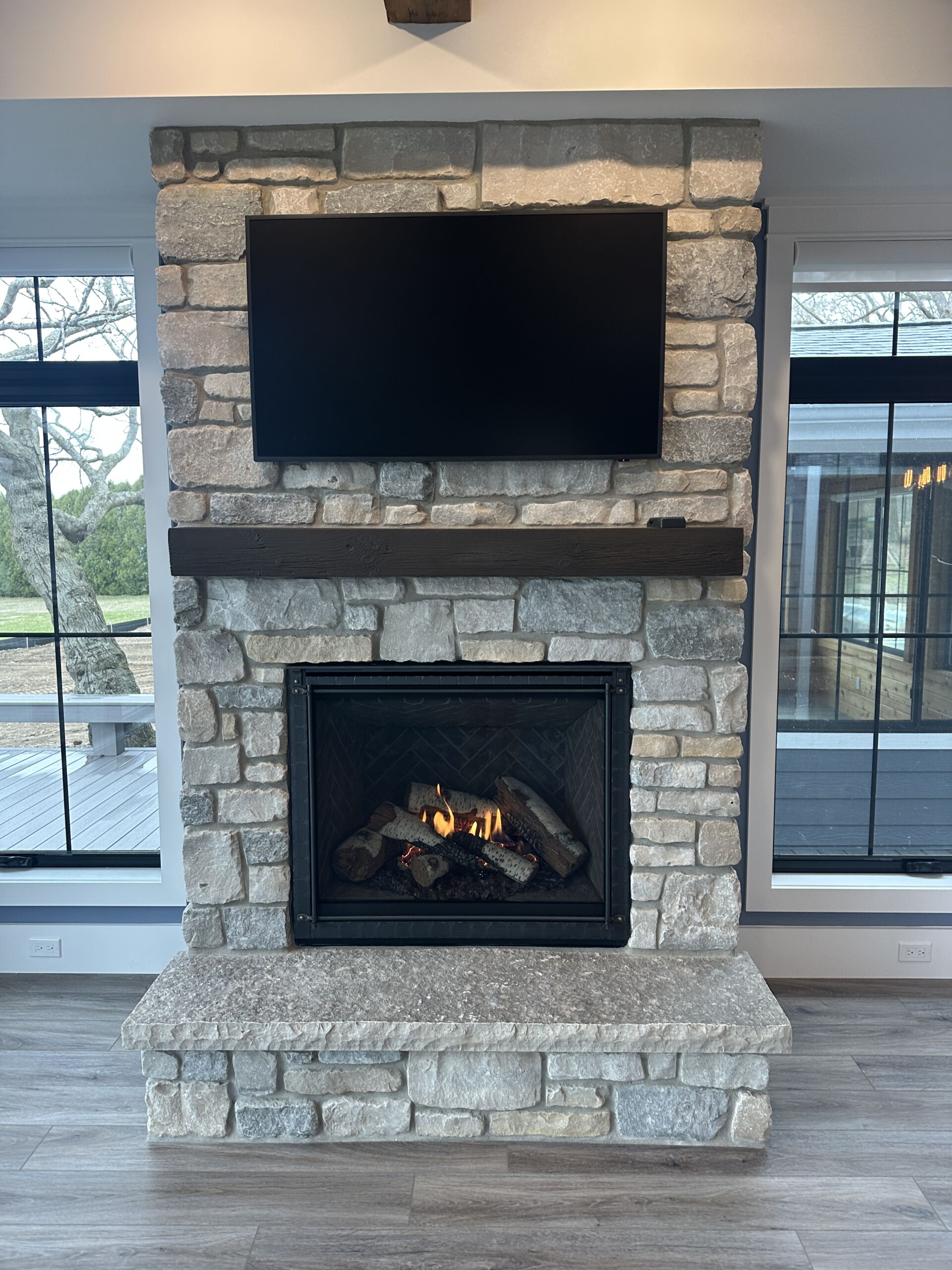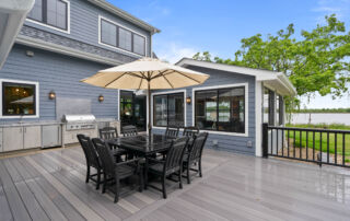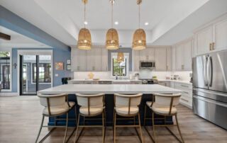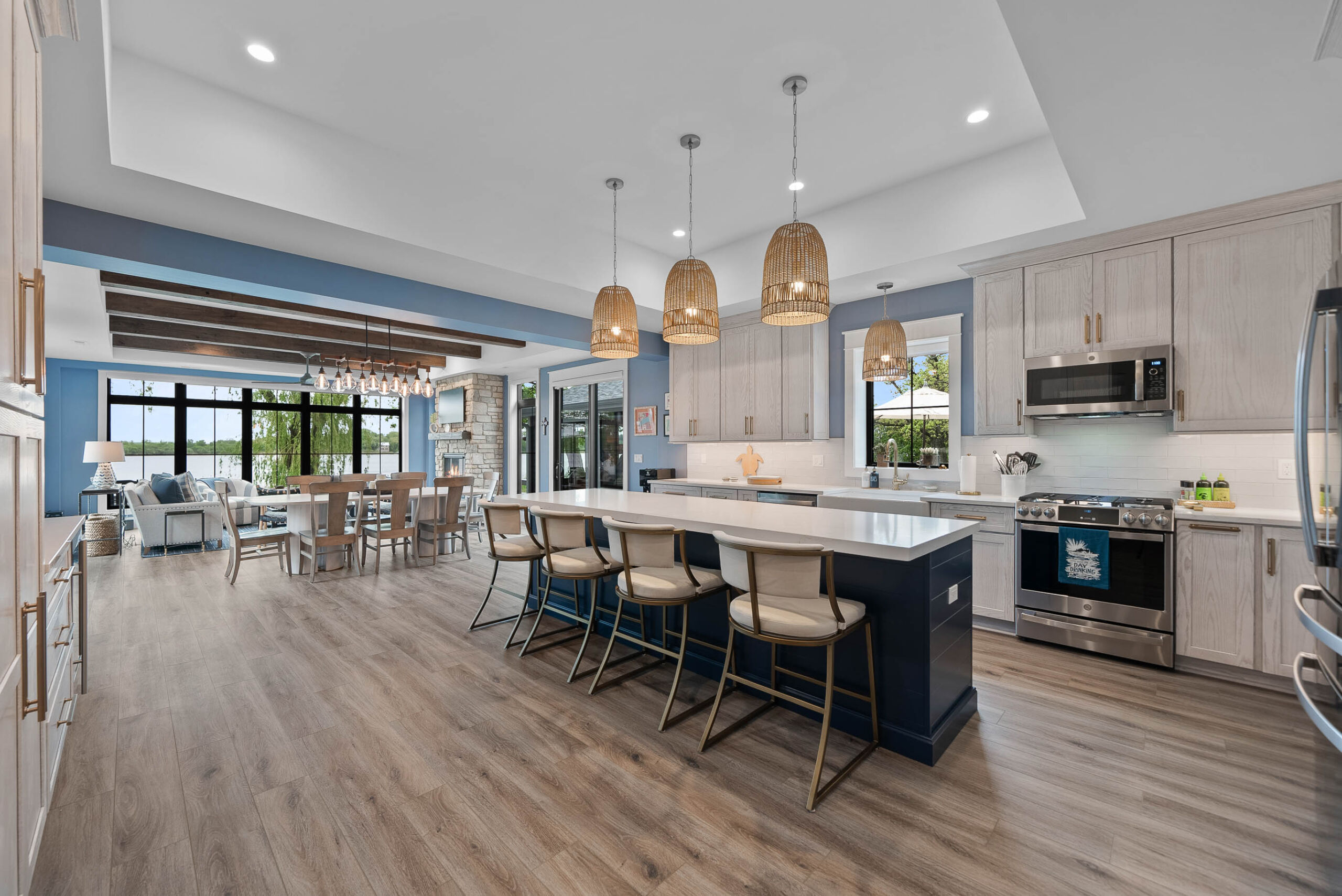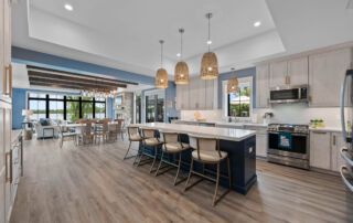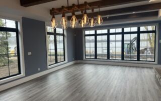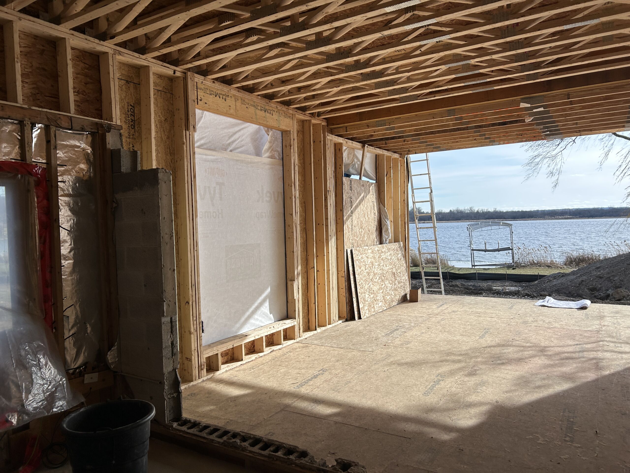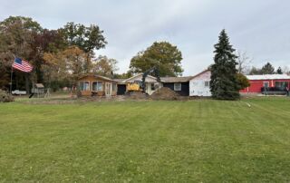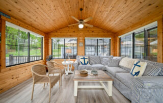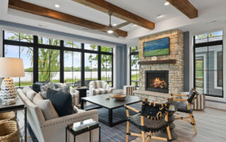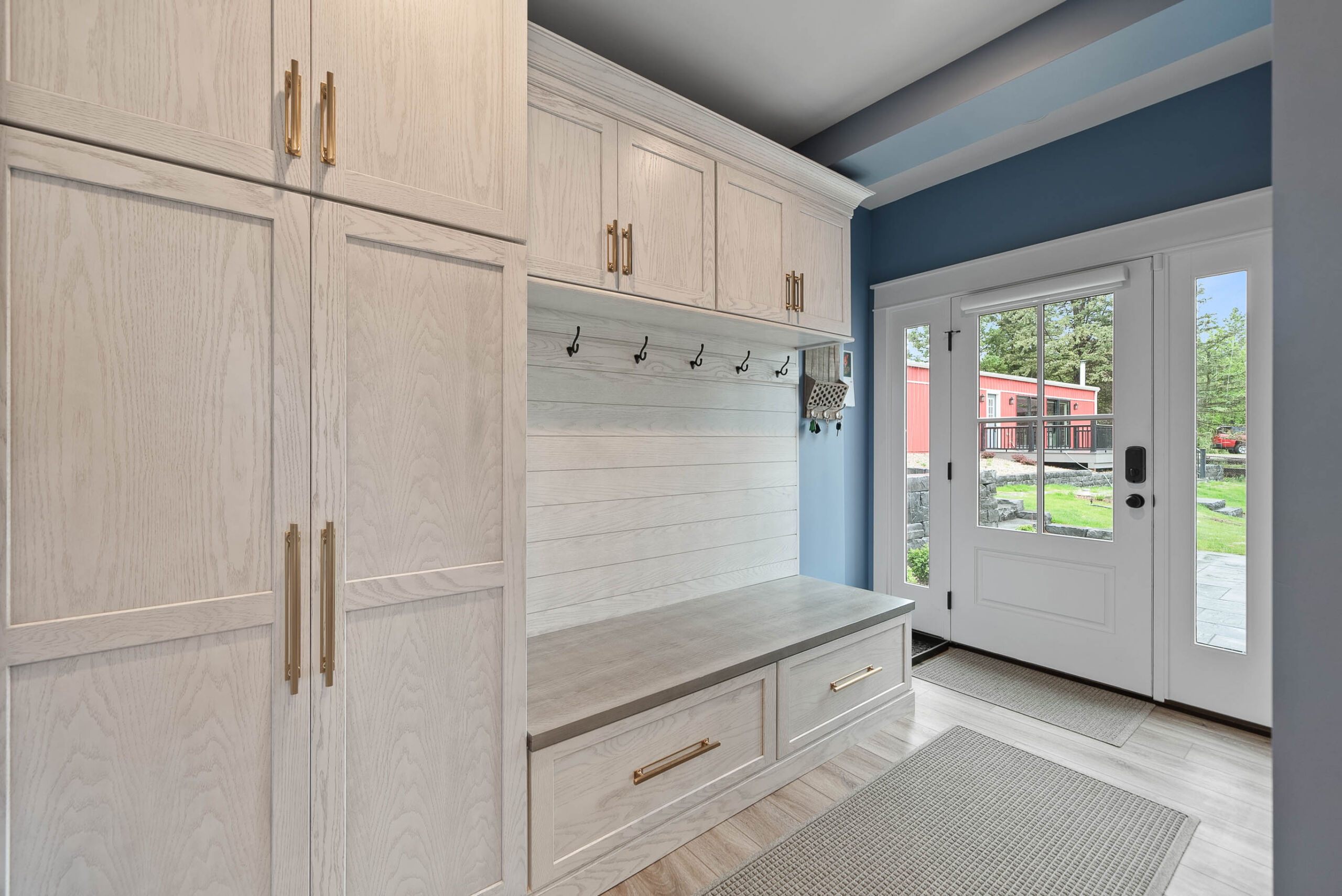 Matustik Builders transformed a dated residence in Turtle Lake, Wisconsin into a warm and inviting lakefront cottage designed with today’s modern amenities. The charming yet functional kitchen with high end details opens to the family room and showcases enhanced lake views, a striking stone fireplace, and exposed wood beams—an ideal setting for gatherings. A knotty pine three-season room adds a rustic touch, creating a serene retreat overlooking the property.