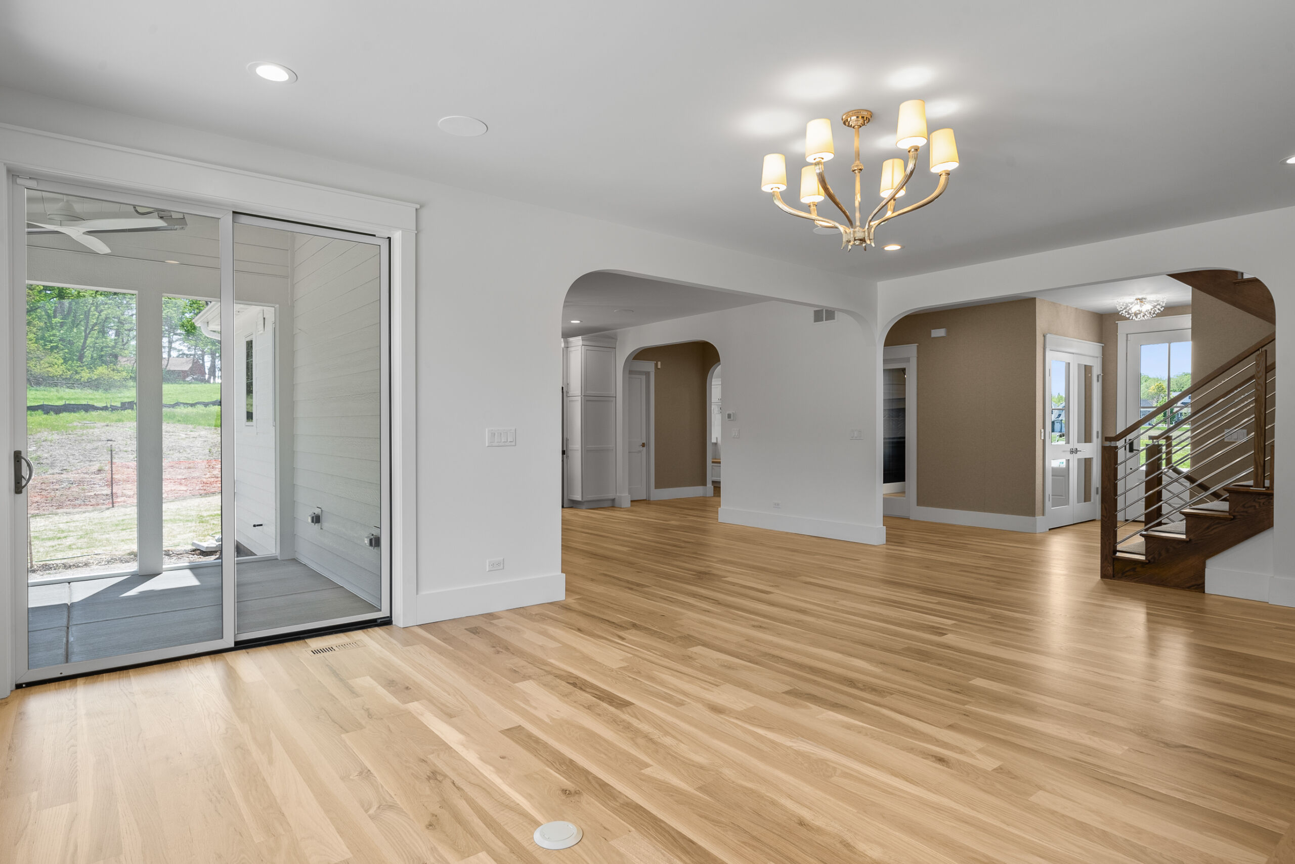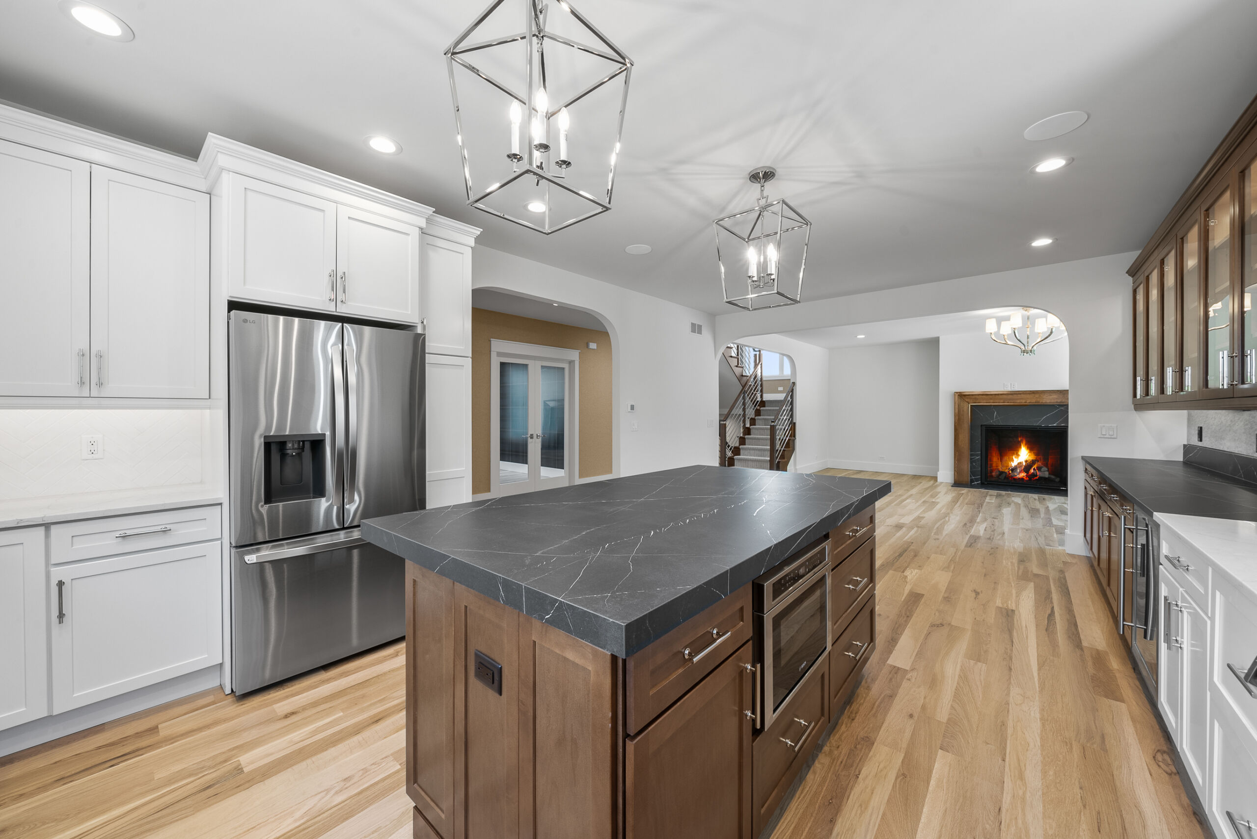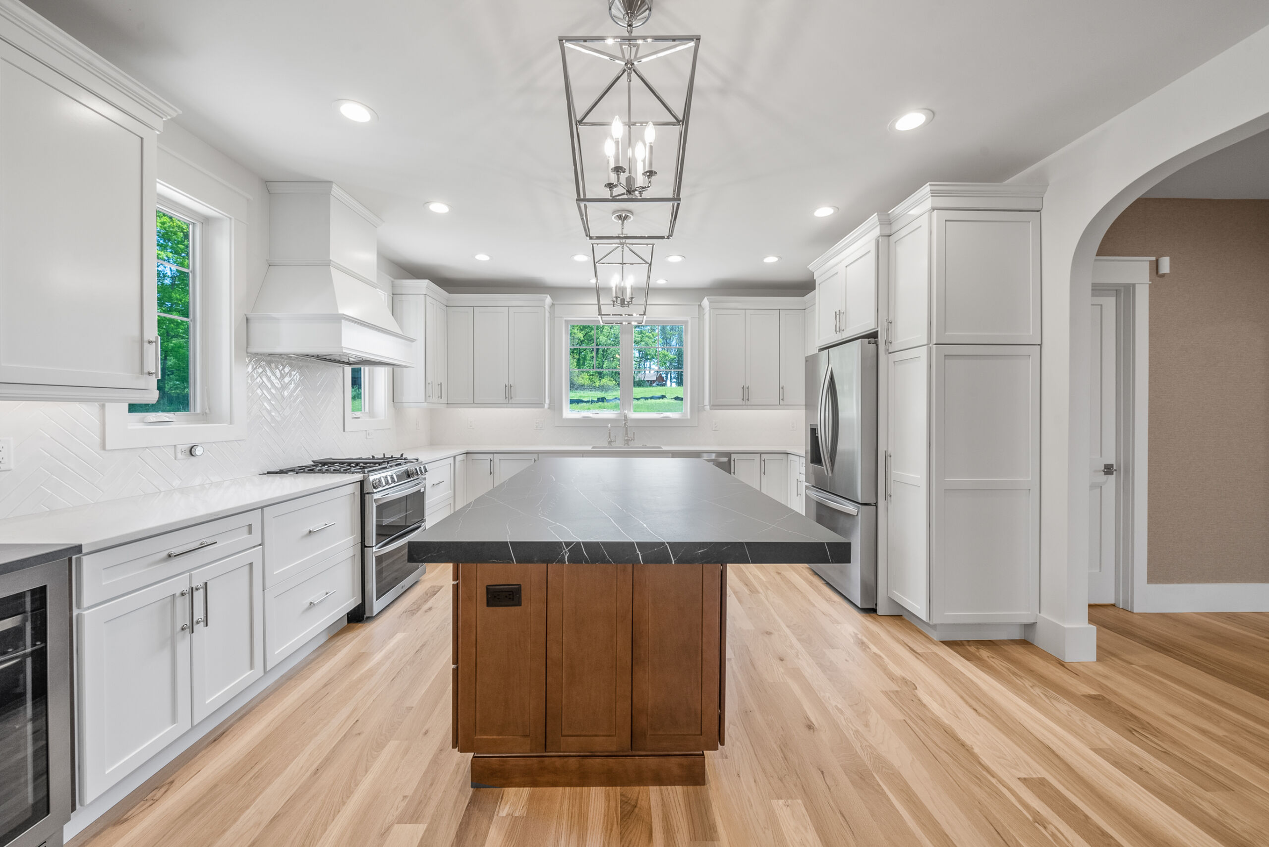 This beautiful home was custom built by Matustik Builders in Lake Geneva, Wisconsin and features a gourmet kitchen with gorgeous custom cabinets, a fantastic home office and a wonderful screened porch complete with ceiling heaters for chilly evenings.